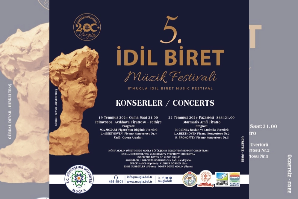 Muğla Büyükşehir Belediyesi 5. Muğla İdil Biret Müzik Festivali’nde kariyerlerini başarıyla sürdüren beş müzisyen Münif Akalın şefliğinde Büyükşehir Belediyesi Senfoni Orkestrası eşliğinde sahne alacak. İki konserden oluşan Festival 19 Temmuz’da Fethiye’de Telmessos Açıkhava Tiyatrosu’nda, 22 Temmuz’da Marmaris’te Amfi Tiyatro’da yapılacak ve girişler ücretsiz olacak.