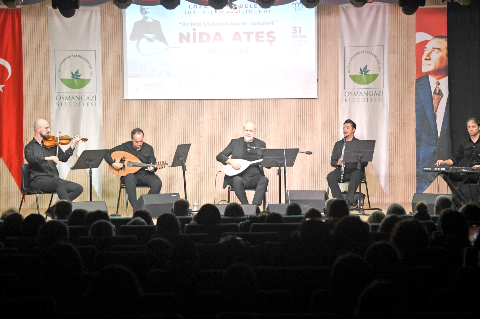 Osmangazi Gösteri Merkezi’nde düzenlenen “Birlikte Söylenen Ayrılık Türküleri” konserine, Osmangazi Belediye Başkan Yardımcısı Mutlu Esendemir’in yanı sıra belediye meclis üyeleri ile çok sayıda sanatsever katıldı. Nida Ateş’in güçlü yorumuyla hayat bulan ‘Çalın Davulları’, ‘Bülbülüm Altın Kafeste’ ile ‘Vardar Ovası’ gibi türküler, mübadele yıllarında yaşanan ayrılıkların ve zorunlu göçlerin bıraktığı derin izleri yeniden hatırlattı. Konseri yoğun ilgiyle takip eden dinleyiciler ise kimi zaman hüzünlenirken kimi zaman da ortak geçmişin birleştirici gücüyle duygu dolu anlar yaşadı.