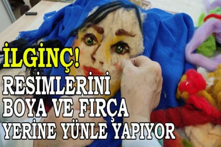 Uzun yıllar resim öğretmenliği yaptıktan sonra emekli olan Mükerrem Turhan, farklı nesnelerden resim yapmak için araştırmalar yaptı. Bir gezi ziyaretinde yünden resim yapabileceğini düşünen Turhan, renkli yünlerden portre ve farklı resim çalışmaları deneyerek başarılı oldu. Yaptığı yünden resimlerden sergi açarak bunları sergiledi. Yünden resim tablolarını ise 3 ila 5 bin lira arasında değişen fiyatlarla satıyor. Yünden resim yapan sanatçının yaptığı çalışmaları vatandaşlar ise meraklı gözlerle takip ederek öğrenmeye çalışıyor. Yıllarca resim öğretmenliği yaptığını ifade eden Mükerrem Turhan, "Yünden farklı resimler yapıyorum. Görenler çok beğeniyor. Yıllarca resim öğretmenliği yaptım, emekli olduktan sonra boyanın dışında nasıl resim diye araştırmalar yapıyordum. Yünden yapabileceğim geldi. Uğraşlarım sonucunda renkli yünlerden çeşitli resim çalışmaları yaptım çok beğenildi. Türkiye'de ve dünyanın farklı ülkelerinde sergiler açtım. İnsanlar yünden resim yapıldığını görünce şaşırıyor. Yaptığım tabloları 3 ila 5 bin lira arasında değişen fiyatlarla satmaktayım" dedi.
