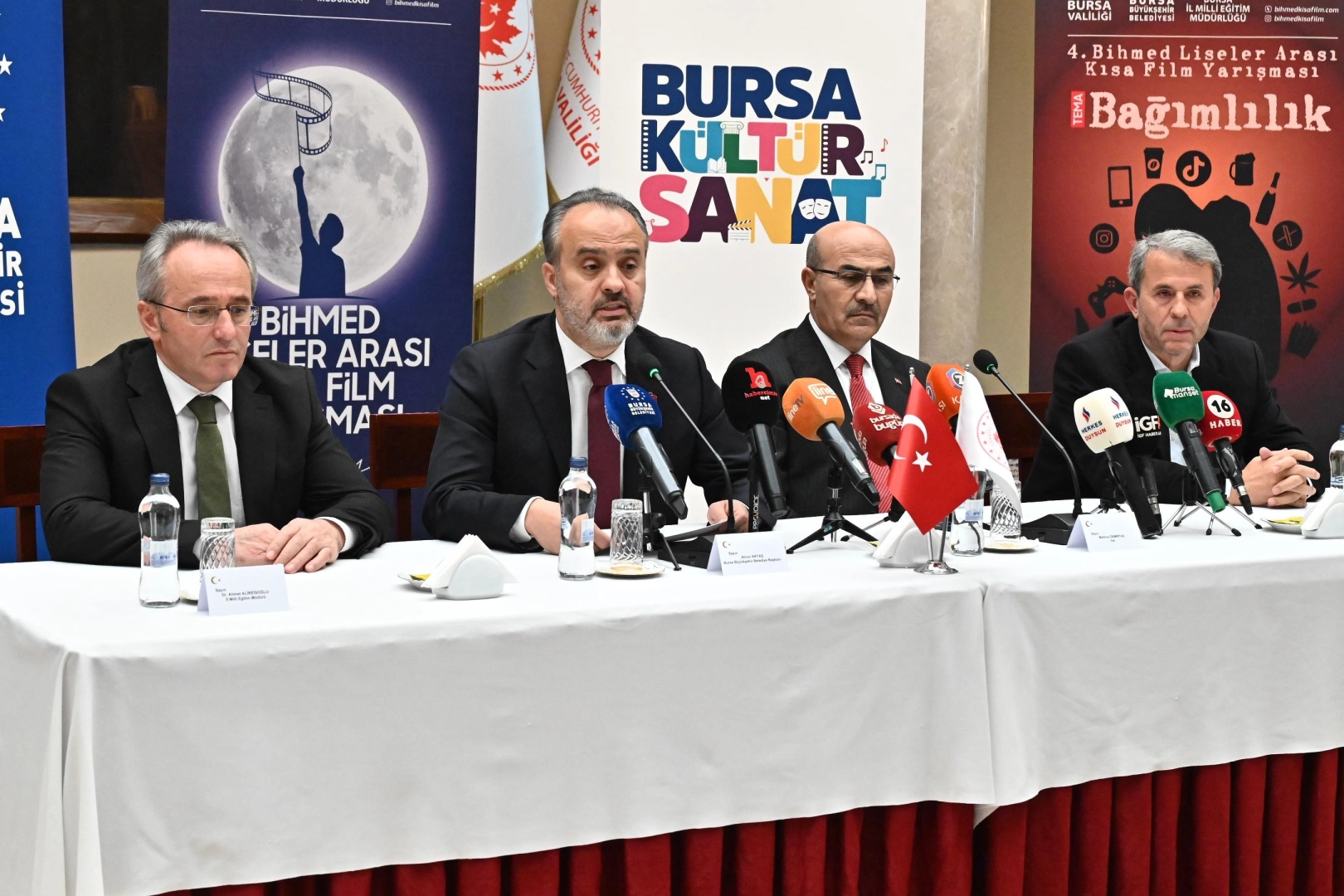 Bursa Valisi Mahmut Demirtaş, bu sene dördüncüsü düzenlenen ‘Liselerarası Kısa Film Yarışması’nın sektöre ilham olacağını ifade etti. BİHMED gibi sivil toplum kuruluşlarının sinemanın kadrajını yeniden vicdan ve merhamete yönelteceğine inandığını ifade eden Demirtaş, “Bu ve benzer programları nitelik ve nicelik açısından arttırmalıyız. BİHMED bu sene tema olarak ‘bağımlılık’ konusunu seçmiştir. Bu çerçevede gençlerimiz bağımlılığa dair fikirlerini hazırladıkları kısa filmlerle beyaz perdeye yansıtacaktır. Şimdiden sinema sevdalısı gençlerimizi tebrik ediyorum” dedi. BİHMED Başkanı Kadir Oruç, kısa film yarışmasını daha önceden emanet, merhamet, Peygamber sevgisi ve Süleyman Çelebi temalarıyla düzenlediklerini, bu sene ise bağımlılık temasını seçtiklerini anlattı. Sinema konusunda yetenekleri gençleri tespit ederek destek olmayı amaçladıklarını söyleyen Oruç, projeye destek veren herkese teşekkür etti.