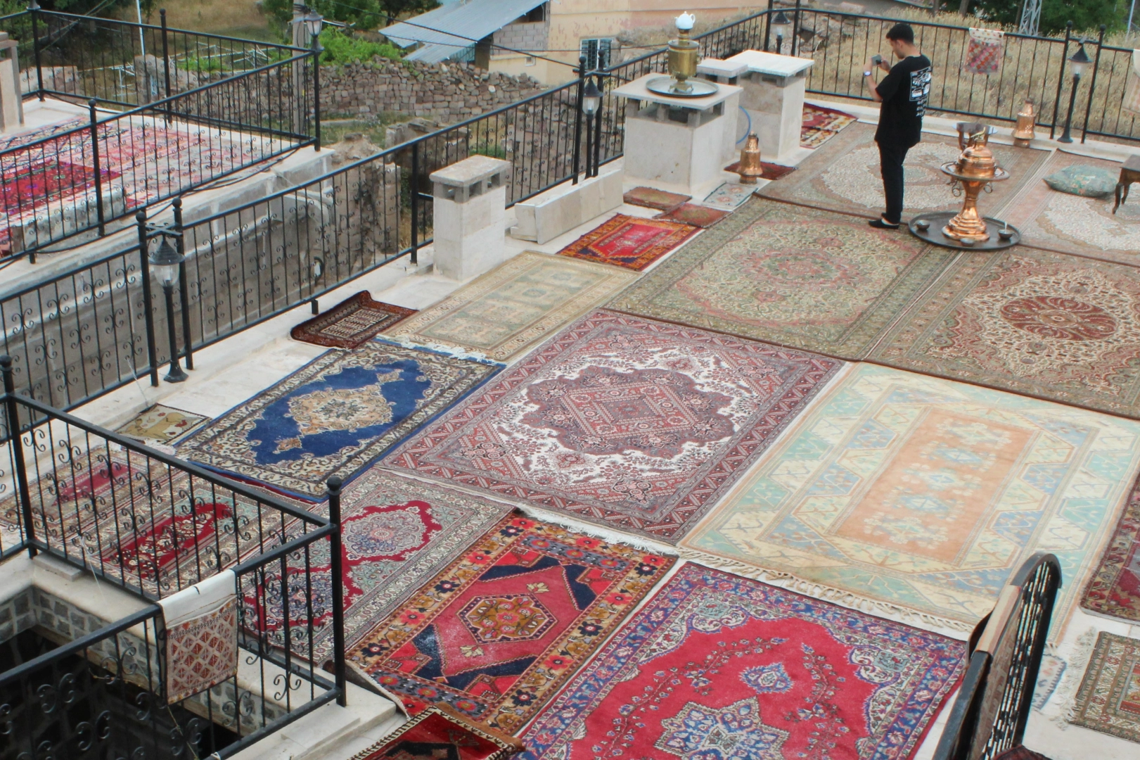 Kayseri'nin Ağırnas ilçesinde yaşayan Mustafa Halıcıoğlu, babadan kalma ve sonradan bölgeden topladığı yüzlerce el dokuması halıyı güvelenmemesi için serdi.