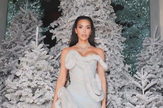 Kim Kardashian, 60 milyon dolarlık malikanesinde ailesinin yıllık Noel Arifesi partisine ev sahipliği yaparken dünyaca ünlü markasıyla elbisesiyle göz kamaştırdı.