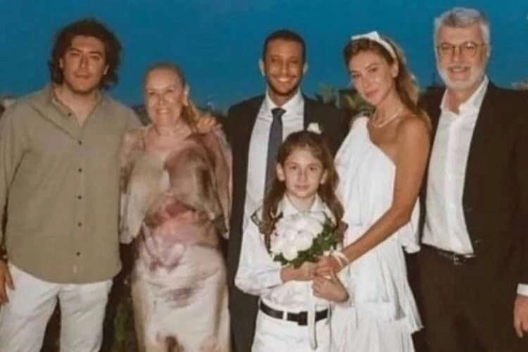 Aile fotoğrafı sosyal medyaya düştükten sonra Melisa Ilıcalı'nın beyaz pantolon ve gömlek kombini ile son derece gündelik katılımı dikkatlerden kaçmadı.