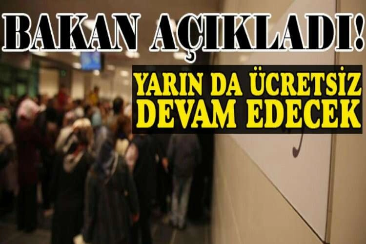Ulaştırma ve Altyapı Bakanı Adil Karaismailoğlu, Marmaray seferlerinin yarın sabaha kadar ücretsiz olacağını açıkladı.