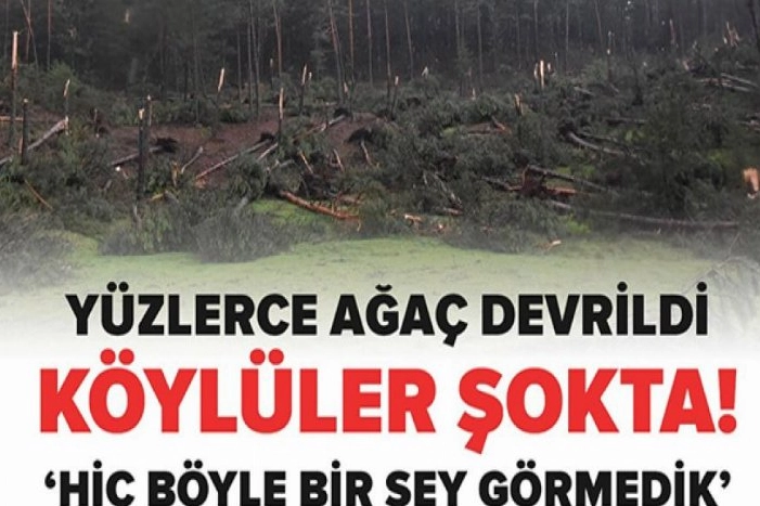 Mehmet Kara da devrilen ve gövdesinden kırılan ağaçları inceledi. Büyük afet yaşadıklarını anlatan Kara, "Dün büyük bir rüzgarla karşılaştık. Sesini duyduk, sonradan buraya geldik. Buralarda büyük bir afet olmuş. 66 yaşındayım, böyle bir şey görmedim. Allah korusun köyümüze gelse, ortadan kaldırabilirdi" ifadelerini kullandı.