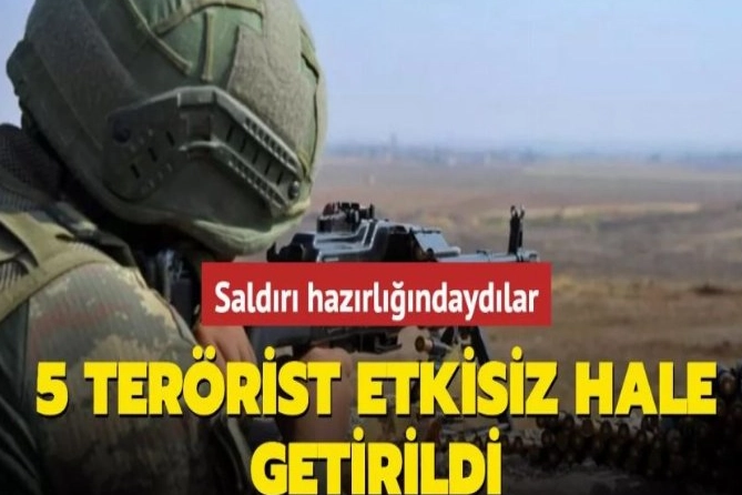 Son dakika haberi: Milli Savunma Bakanlığı (MSB), saldırı hazırlığındaki 5 PKK/YPG’li teröristin etkisiz hale getirildiğini duyurdu.
