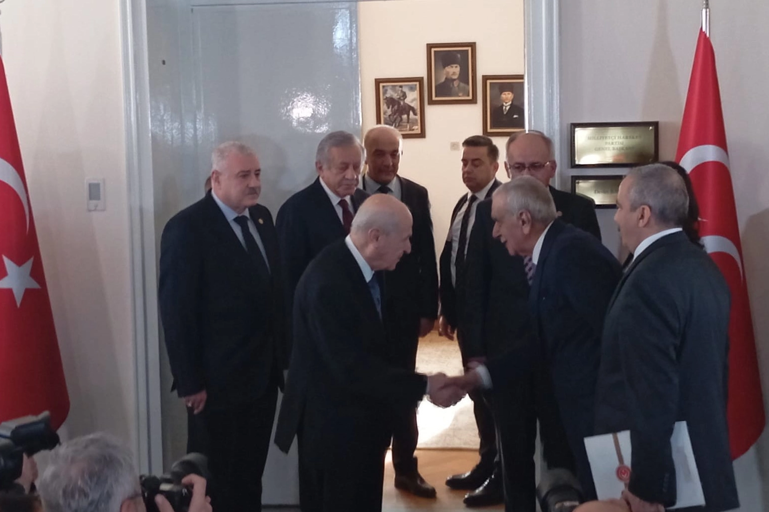 DEM Parti İstanbul Milletvekili Sırrı Süreyya Önder, Van Milletvekili Pervin Buldan ve eski Mardin Büyükşehir Belediye Başkanı Ahmet Türk, Milliyetçi Hareket Partisi (MHP) Genel Başkanı Devlet Bahçeli ile görüştü.