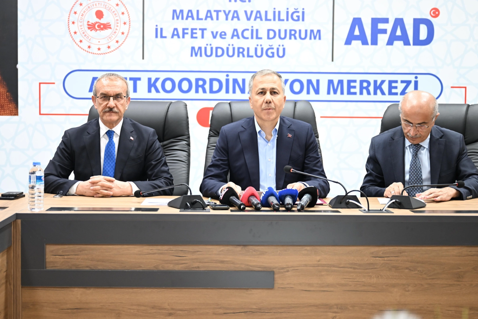 "Saha taraması gerçekleştirdik" Depremin olduğu ilk andan itibaren çalışmalarını aralıksız sürdürdüklerini ve yerleşim yerlerinde tarama gerçekleştirdiklerini söyleyen İçişleri Bakanı Ali Yerlikaya, "Depremden Kahramanmaraş ve Tunceli illerimiz de etkilendi. Depremin olduğu ilk andan itibaren biz bu haber bize geldiği an AFAD Başkanlığımızdan 18 dakika sonra depremi merkez üssü az önce de ifade ettiğim gibi Malatya talep olduğunu ilk önce Cumhurbaşkanımıza bilgiyi arz ettik. Hemen süratle valilerimiz ile irtibata geçtik. Depremin hemen ardından Malatya Valimiz başta olmak tüm vali AFAD, jandarma, emniyet, büyükşehir ve il belediyeleri ilçe belediyeleri başta olmak üzere kamu kurum ve kuruluşları bir koordinasyon süreciyle birlikte ilgili yerleşim yerlerinde mahalleler köy köy saha taraması gerçekleştirdik” şeklinde konuştu.