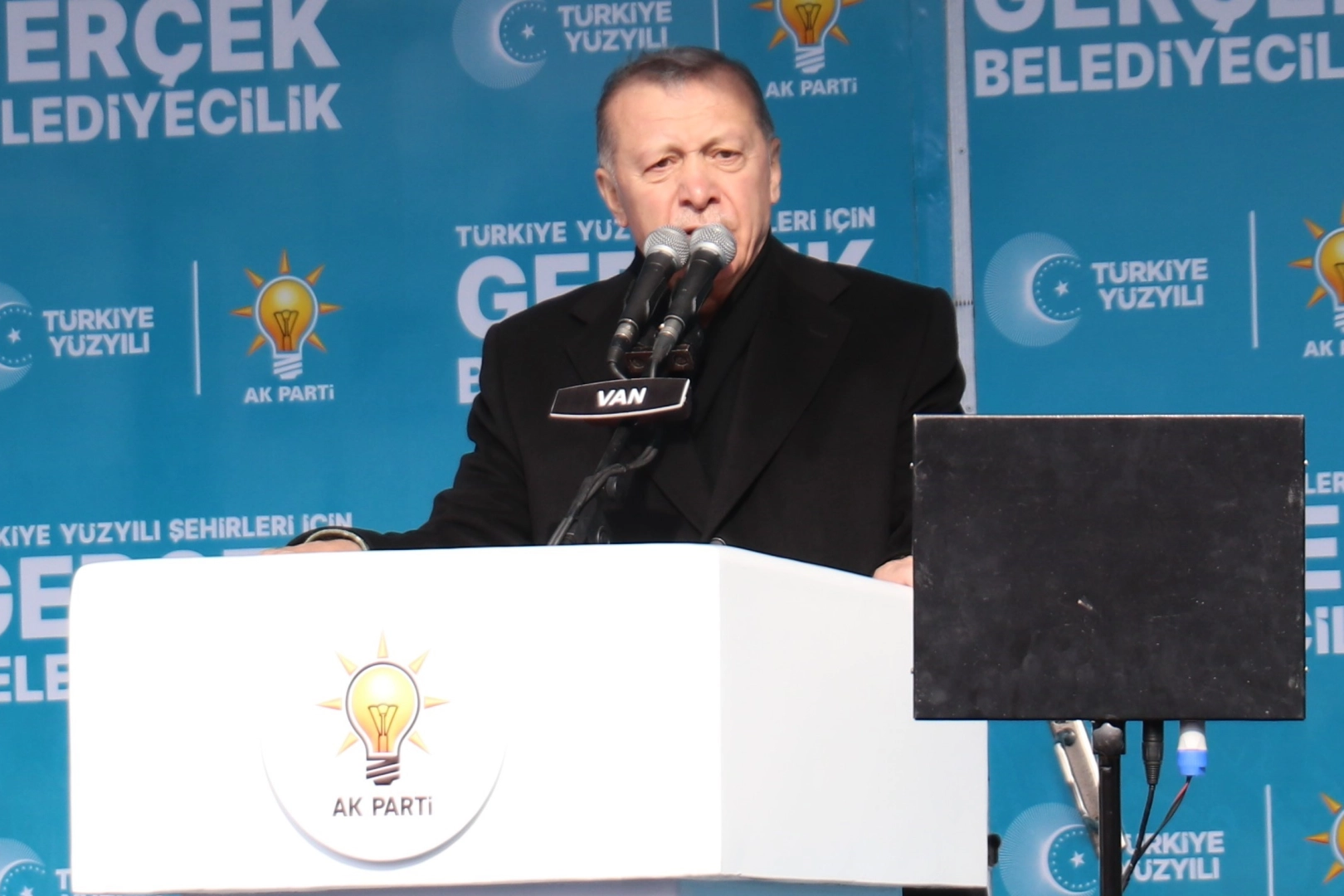 "CHP dediğiniz CHP değildir" Muhalefeti de eleştiren Erdoğan, konuşmasını şöyle sürdürdü: “Hiçbiri kendisi değildir. CHP dediğiniz CHP değildir. Bu tabela altında toplananlar da bilhassa şu anda bir titan zincirinin halkaları, rantiye çarkının dişlileri haline gelmişlerdir. Herkes kendi ihtirasının peşindedir. Öte yandan DEM Parti'de kimin iradesi kimin elinde belli değil. Bu yapının gerçek anlamda bir siyasi faaliyetini, ülkenin ve milletin hayatını değiştirecek bir programını, projesini ve gayretini gördünüz mü? Göremezsiniz. Çünkü bu yapının tek misyonu Türkiye’nin aleyhine olan ne varsa ona destek vermektir. Miras yedisinden partimizin eskilerine kadar ötekileri söylemeye gerek bile duymuyorum. Türkiye’de göz diktikleri için milli irade işportacılığına soyunan istismarcılara da eyvallah etmeyiz. Bu mücadelemizde en güçlü şekilde sizleri yanımızda görmek istiyoruz. Öyleyse şimdi buradan öyle bir ses verin ki Van Gölü'nün etrafında duymayan kalmasın. 31 Mart’ta Türkiye Yüzyıl şehirleri için hazır mıyız? 31 Mart‘ta Türkiye Yüzyılı şehirleri için kararlı mıyız? 31 Mart‘ta gerçek belediyeciliği tercih ediyor muyuz? Bunun için seçim gününe kadar ana kademe, kadın kolları, gençler kapı kapı dolaşmaya, birlikte Türkiye haritasının tamamını Cumhur İttifakı'nın renkleri ile boyamaya var mıyız? İnşallah Ramazan-ı Şerif'i bayram gelmeden 31 Mart milli irade bayramı haline getireceğiz. Seçime az kaldı, bunun için hep beraber gece gündüz çok çalışacağız. Rabbim hepinizden razı olsun" diye konuştu.