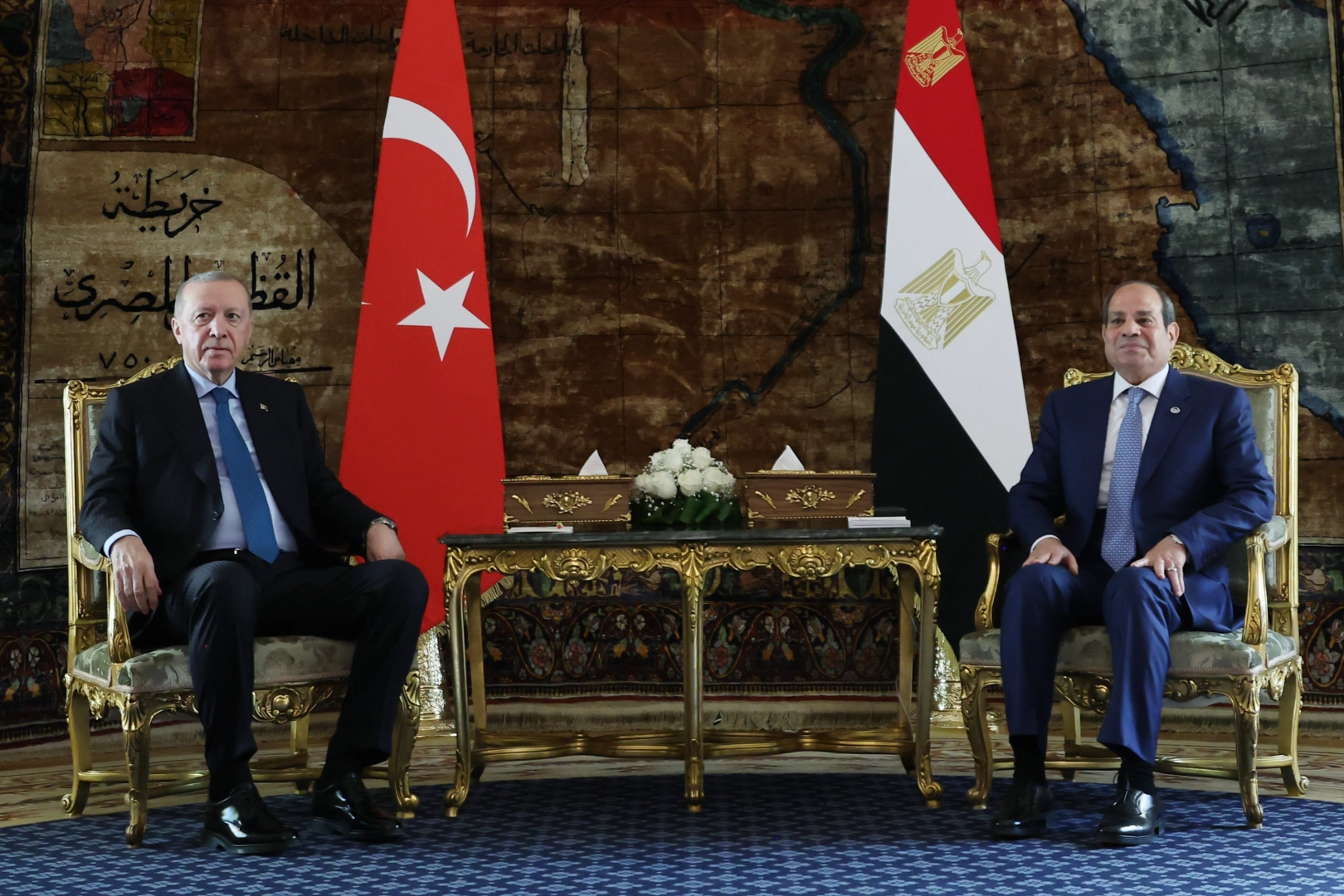 Cumhurbaşkanı Recep Tayyip Erdoğan, Suudi Arabistan temaslarını tamamlayarak Mısır'a geçti. "TUR" uçağıyla Mısır'ın başkenti Kahire'ye gelen Cumhurbaşkanı Erdoğan, havalimanından Al-İttihadiye Sarayı'na geçti. Cumhurbaşkanı Erdoğan, burada Mısır Cumhurbaşkanı Abdulfettah es-Sisi tarafından resmi törenle karşılandı.
