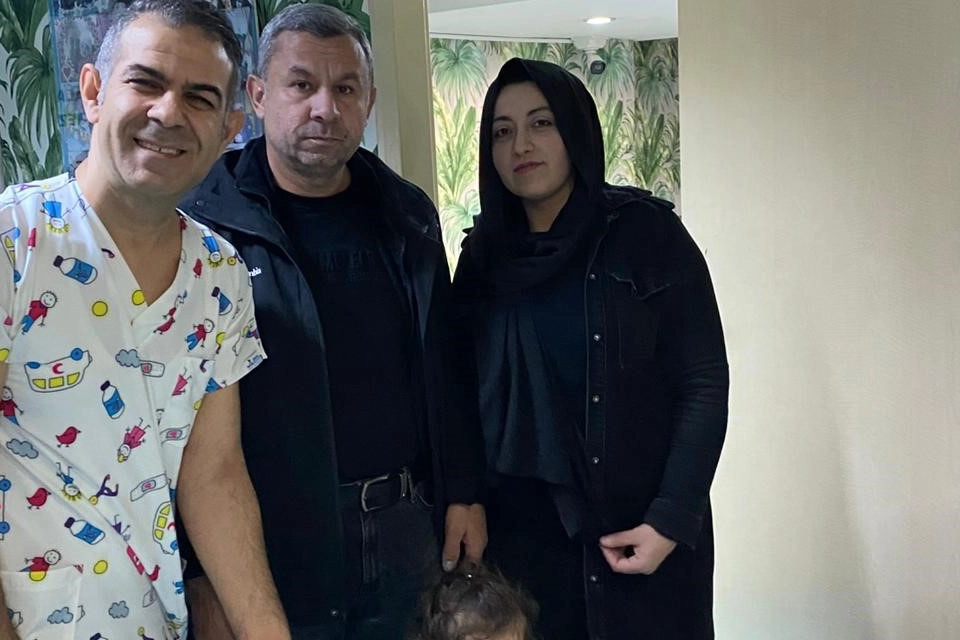 Diyarbakır’da 18 yıl sonra çocuk sahibi olan aile, çocuğuyla tedavi gördükleri doktora ziyarette bulundu.