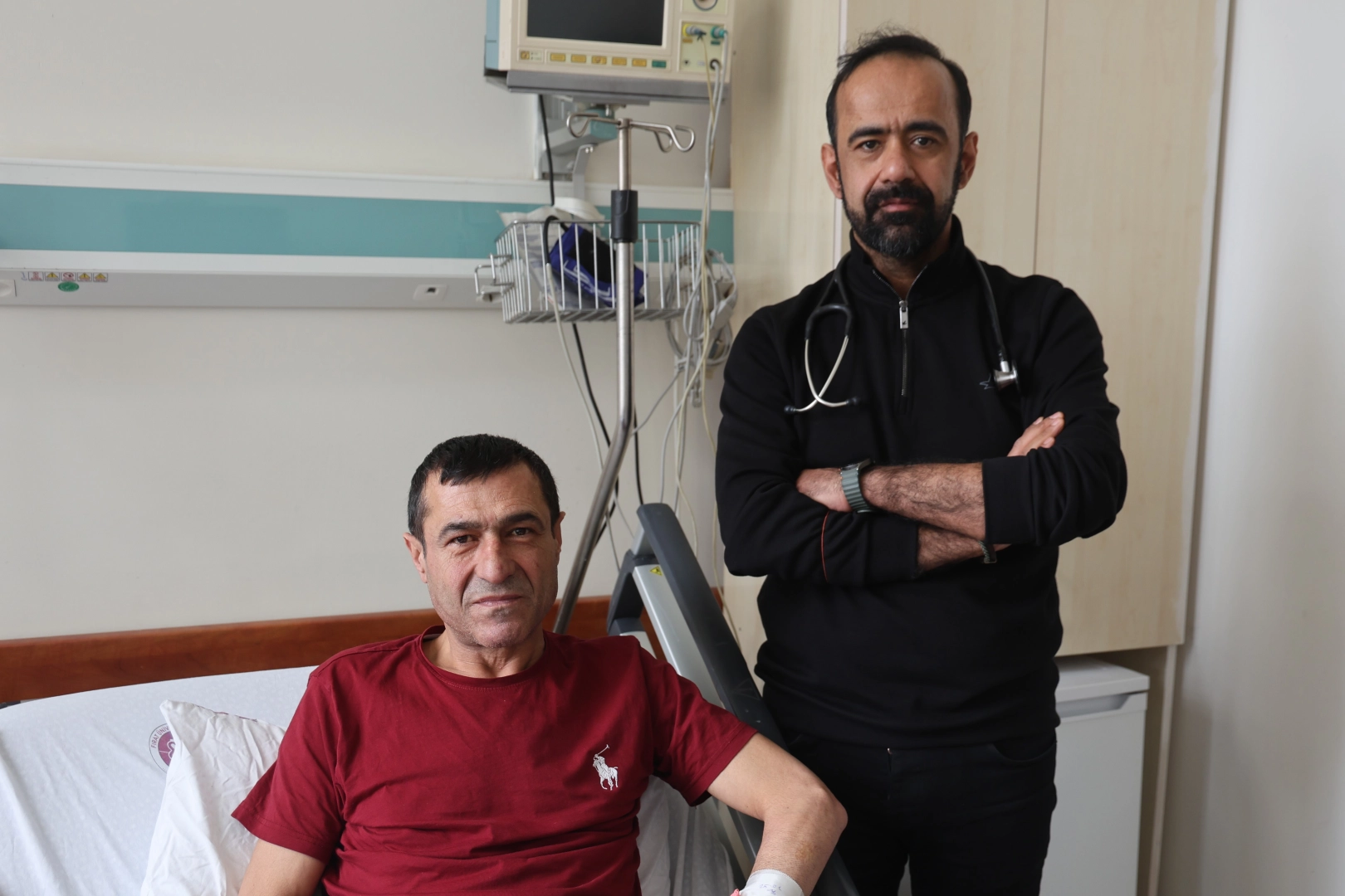 Almanya'nın Frankfurt kentinde yaşayan 2 çocuk babası Mustafa Katrancı, bacaklarında yaşadığı damar tıkanıklığını oradaki hastanelerde tedavi ettiremeyince, Elazığ'a gelerek ameliyat olup sağlığına kavuştu. Almanya’nın Frankfurt kentinde yaşayan 55 yaşındaki 2 çocuk babası Mustafa Katrancı, bacaklarındaki damar tıkanıklığı nedeniyle günlük hayatını sürdürmekte zorlanıyordu. Gün içinde 100 metreden fazla yürüyemiyor, kısa mesafelerde bile şiddetli ağrı yaşıyordu. Frankfurt’ta başvurduğu hastanede yapılan kontrollerde bir bacağındaki damarın yüzde 70, diğerinin ise tamamen tıkalı olduğu ortaya çıktı. Kısmen tıkalı olan damar açıldı ancak tamamen kapalı olan damar için doktorlar riskli olduğu gerekçesiyle müdahale edemeyeceklerini, bu nedenle bypass ameliyatı olması gerektiğini belirtti. Açık ameliyat olmak istemeyen Mustafa Katrancı, başka bir çözüm arayışına girdi. Memleketi Elazığ’da görev yapan Kardiyoloji Uzmanı Prof. Dr. Necati Dağlı ile iletişime geçen Katrancı, yapılan değerlendirme sonrasında Elazığ’a gelerek Fırat Üniversitesi Hastanesi’nde tedavi altına alındı. Burada gerçekleştirilen işlemle hem tamamen tıkalı olan bacak damarı hem de karın bölgesindeki tıkalı damar ameliyatsız bir yöntem olan anjiyografi ile açıldı. Özel ilaçlı balon tekniği kullanılarak yapılan başarılı müdahale sayesinde hasta açık ameliyat olmaktan kurtuldu. İşlem sonrasında yürüyüş mesafesi belirgin şekilde artan Mustafa Katrancı bypass olmaktan kurtulmuş bir şekilde sağlığına kavuşarak taburcu edildi. Almanya’da yaşadığını belirten Mustafa Katrancı, "Almanya’dayken iki bacağımda sorun vardı. Birinde yüzde 70 bir diğerinde ise yüzde 100 tıkanıklık vardı. Orada geçen ay anjiyo oldum. Yüzde 70 tıkalı olan bacağımı açtılar, yüzde 100 tıkalı olan bacağımı 'açamayız, bypass olman gerekiyor' dediler. Necati hocamı duymuştum ondan dolayı Elazığ’a geldim. Şu anda tıkalı olan damarlarımı açtılar. Şükürler olsun sağlığıma kavuştum kendimi iyi hissediyorum" dedi.
