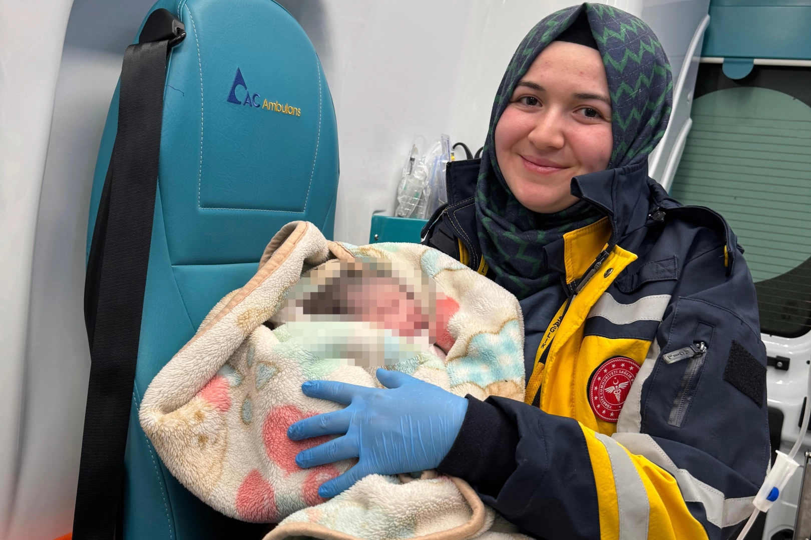 Kocaeli'nin Kartepe ilçesinde aile ziyareti sırasında doğum sancıları tutan 36 haftalık hamile genç kadın, kızını ambulansta dünyaya getirdi.