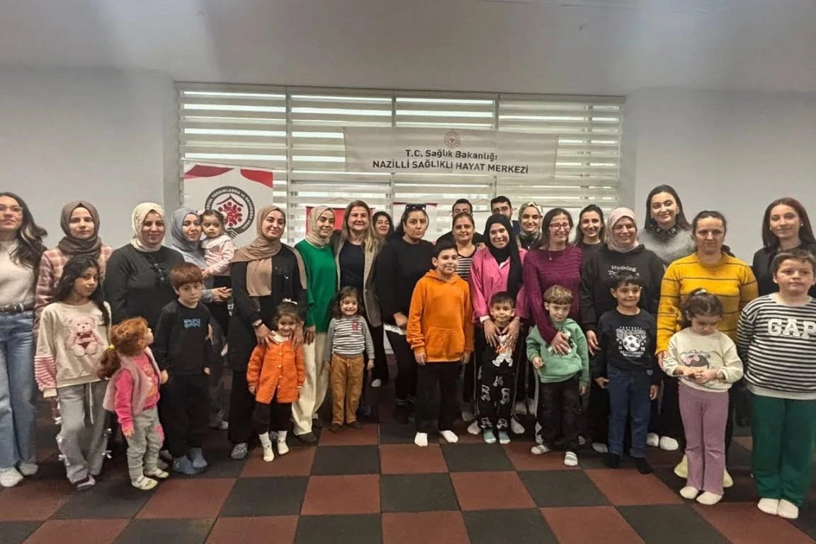 Aydın'ın Nazilli ilçesinde düzenlenen Anne-Çocuk Sağlığı etkinliğinde anneler egzersiz ve sağlıklı yaşam konusunda bilgilendirilirken, çocukların gelişimleri de uzmanlar tarafından gözlemlendi. Nazilli İlçe Sağlık Müdürlüğü Cumhuriyet Sağlıklı Hayat Merkezi'nde Anne - Çocuk Sağlığı etkinliği düzenlendi. Nazilli Sosyal Yardımlaşma ve Dayanışma Vakfı bünyesinde faaliyet gösteren Sosyal Dayanışma Merkezi (SODAM) iş birliğiyle Sağlıklı Hayat Merkezi'ni ziyaret eden kursiyer annelere, merkezde sunulan hizmetler hakkında bilgilendirme yapıldı. Etkinliğe İlçe Sağlık Müdürü Dr. Şule Akbaş da katılırken, anneler fizyoterapist eşliğinde toplu olarak bilgilendirildi. Program kapsamında spor salonunda günlük yaşamda yapılması gereken egzersiz hareketleri uygulamalı olarak gösterildi. Etkinlikte ayrıca bayanlara kanser taramaları ile çocukluk döneminde görülen kanserler konusunda bilgi verildi. Diyetisyen tarafından talep eden vatandaşlara randevu oluşturuldu. Öte yandan anneler etkinliğe katılırken, oyun odasında psikolog ve çocuk gelişimciler tarafından çocukların gelişimleri gözlemlendi. Gözlem sırasında çocuklarla eğitici oyunlar oynanırken, annelerle yapılan görüşmelerle çocukların gelişimleri değerlendirilerek bilgilendirme sağlandı.