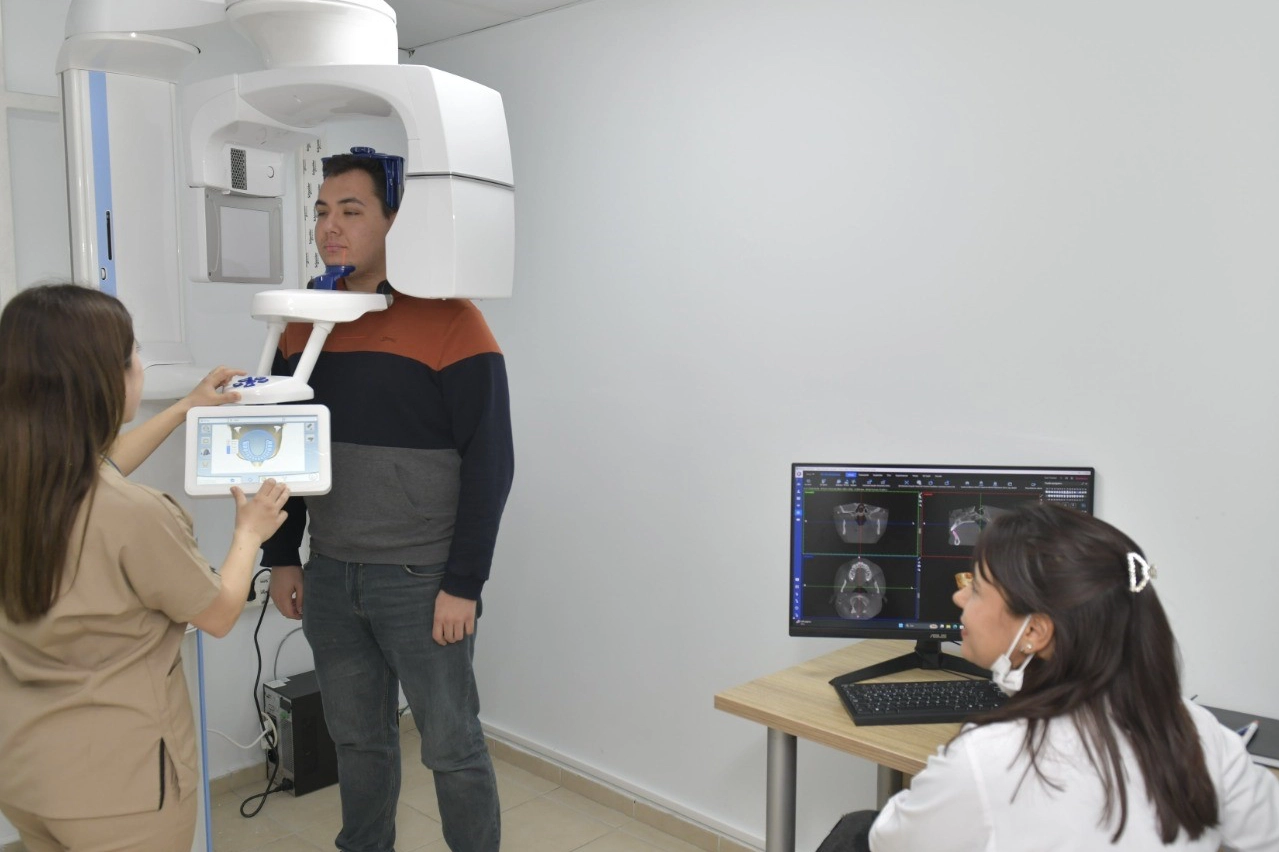 Muğla Sıtkı Koçman Üniversitesi (MSKÜ) Diş Hekimliği Fakültesi, ileri görüntüleme sistemlerini klinik hizmet altyapısına kazandırarak tanı ve tedavi süreçlerinde yeni bir aşamaya geçti. MSKÜ Diş Hekimliği Fakültesi mevcut temel dental görüntüleme sistemlerine ek olarak hizmete alınan Dental Volümetrik Tomografi (DVT) cihazı ile bundan sonra çene ve çevresindeki sert dokuların üç boyutlu olarak değerlendirilmesine imkan tanıyacak. Geleneksel iki boyutlu görüntüleme yöntemlerine kıyasla daha yüksek görüntü kalitesi ve doğruluk sunan bu sistem sayesinde, cerrahi ve protetik işlemler başta olmak üzere birçok tedavi daha güvenli ve etkin şekilde planlanabilecek. Ayrıca sefalometrik radyografi cihazı, diş ve çene yapılarının büyüme ve gelişim sürecinin değerlendirilmesinde önemli avantajlar sunacak. Özellikle alt ve üst çene arasındaki iskeletsel uyumsuzlukların ve dişlerdeki çapraşıklıkların ayrıntılı analizine imkân sağlayacak bu cihaz, ortodontik tedavilerin planlanması ve tedavi sürecindeki değişimlerin izlenmesinde etkin rol oynayacak. İleri görüntüleme sistemlerinin MSKÜ Diş Hekimliği Fakültesi bünyesinde aktif olarak kullanılmasıyla birlikte, hastaların şehir dışındaki merkezlere yönlendirilme ihtiyacı ortadan kalkacak.