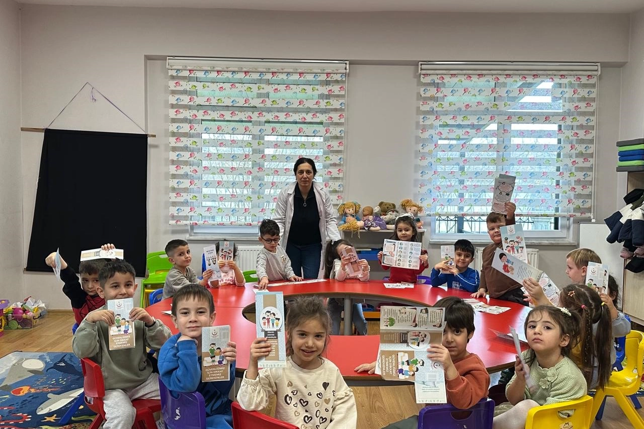 Kaynaşlı İlçe Devlet Hastanesi ile Toplum Sağlığı Merkezi ekipleri tarafından, Abdüssamed Dik Anaokulu öğrencilerine yönelik bilgilendirici ve eğitici bir sağlık programı düzenlendi. Öğrencilere yönelik gerçekleştirilen eğitim programında, çocuklarda bulaşıcı hastalıklar, sağlıklı beslenme, çocuk güvenliği, kişisel hijyen ve korunma yöntemleri konularında yaş gruplarına uygun, anlaşılır ve eğlenceli içeriklerle bilgilendirme yapıldı. Uzman sağlık personeli tarafından verilen eğitimlerde, el yıkama alışkanlığı, diş sağlığı, dengeli beslenmenin önemi ve günlük hayatta karşılaşılabilecek risklere karşı alınması gereken temel önlemler uygulamalı olarak anlatıldı. Program kapsamında, çocukların sağlık bilincinin küçük yaşlardan itibaren geliştirilmesi ve sağlıklı yaşam alışkanlıklarının kazandırılması hedeflendi. Eğitim süresince öğrencilerin aktif katılımı sağlanarak, merak ettikleri sorular yanıtlandı ve doğru davranış biçimleri pekiştirildi.