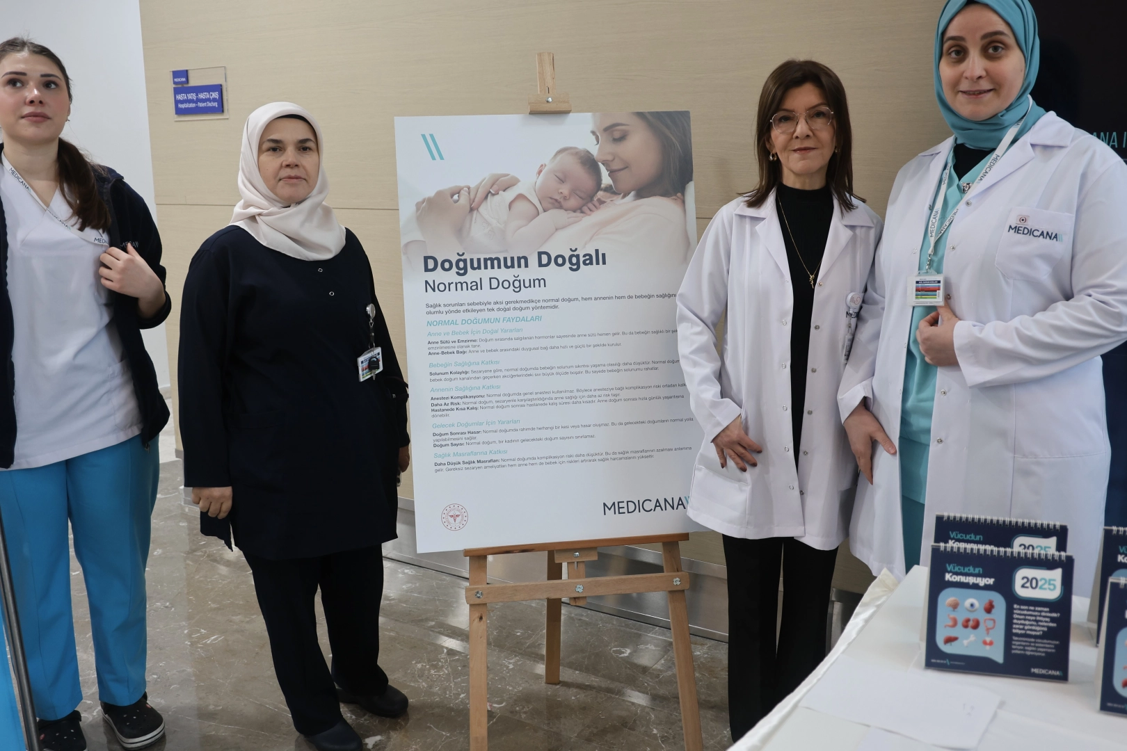 Medicana Sağlık Grubu Kadın Hastalıkları ve Doğum Uzmanı Op. Dr. Tuğba Sekmenli Tursun ve beraberindeki ekip, normal doğum ile sezaryen doğum arasındaki farklara dikkat çekmek için hastanede kurulan stantta vatandaşları bilgilendirdi. Sağlık Bakanlığı tarafından hazırlanan eylem planına göre bazı uygulamaların hayata geçmesiyle birlikte normal doğum oranlarının artacağına değinen Kadın Hastalıkları ve Doğum Uzmanı Op. Dr. Tuğba Sekmenli Tursun, “Bunların başında öncelikle artık günümüzde anne adaylarının doğum öncesinde mutlaka doğuma hazırlık eğitimi almalarını istiyoruz. Bu eğitimler sayesinde anne adayı doğum konusunda bilinçlenmiş, korkularından arınmış oluyor. Normal doğumu teşvik etmek amacıyla bir de bunun yanında anne adaylarına doğumun yapılacağı hastanede mutlaka doğumla ilgili annenin konforunu, huzurunu, mahremiyetini ön planda tutacak ortamların sağlanması gerekiyor. Anneler her ne kadar doğuma hazırlık eğitimi alırlarsa alsınlar, aktif doğum ağrılarının başlamasıyla birlikte eğer yalnız kalırlarsa sezaryen ihtimali artıyor. Bu yapılan çalışmalarla da ortaya konulmuş. Bu aktif doğum dalgalarının başladığı dönemde güçlü bir doğum ekibiyle birebir destek alan gruplarda normal doğum oranlarının arttığını, sezaryen doğum oranlarının yüzde 50 oranında azaldığını görüyoruz. Doğumun yapılacağı ortamda mutlaka ağrıyla mücadelede bazı alternatiflerin, doğum alternatiflerinin de sunulması gerekiyor. Uygulama olarak sıcak su uygulamaları, bazı masaj uygulamaları normal doğum şansı veya suda doğum alternatifi gibi alternatiflerin bulunulan hastanede anne adayına sunulmasının normal doğuma büyük katkılar sağlayacağını düşünüyoruz. Bu konuda yine annenin doğumlarda hareket özgürlüğü çok önemli. Eğer annenin hareket özgürlüğü sağlanırsa bebek doğum kanalında çok daha rahat bir şekilde ilerleyecek ve normal doğurma ihtimali artacaktır” dedi.