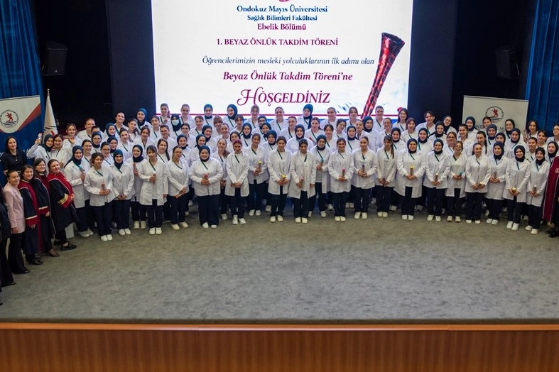 Ondokuz Mayıs Üniversitesi (OMÜ) Sağlık Bilimleri Fakültesi Ebelik Bölümü tarafından düzenlenen 2025–2026 eğitim-öğretim yılı beyaz önlük takdim töreninde 97 ebelik öğrencisi beyaz önlüklerini giyerek fetoskoplarını teslim aldı. Atatürk Kongre ve Kültür Merkezi Mavi Salon'da düzenlenen törende 97 ebelik öğrencisi beyaz önlüklerini giyerek fetoskoplarını teslim aldı. Açılış konuşmasını gerçekleştiren Sağlık Bilimleri Fakültesi Dekan Yardımcısı Dr. Öğr. Üyesi Seval Ağaçdiken Alkan, "Bugün manevi ve sembolik değeri yüksek bu törende sizlerle birlikte olmaktan büyük mutluluk duyuyorum. Ebelik mesleği, geçmişten günümüze varlığını sürdüren, toplumun temeli olan aileyi doğrudan destekleyen köklü sağlık disiplinlerinden biridir. Günümüzde ebeler; doğum öncesi dönemden başlayarak gebelik, doğum ve doğum sonrası süreçte eğitim, uygulama ve rehberlik rolleriyle ailelere destek veren profesyonellerdir. Değerli aileler, evlatlarınız köklü bir mesleğin mirasını devralmaktadır; bu nedenle sizleri tebrik ediyorum. Sevgili öğrenci ebeler, hem köklü bir mesleğin hem de OMÜ Sağlık Bilimleri Fakültesi Ebelik Bölümünün geleneğinin mirasçıları olacaksınız. Değerli hocalarımıza ise ebelik felsefesini ve mesleğin değerlerini öğrencilerimize aktardıkları için teşekkür ediyor, öğrencilerimize eğitim-öğretim hayatlarında başarılar diliyorum" dedi. Ebelik Bölüm Başkan Yardımcısı Dr. Öğr. Üyesi Şebnem Rüzgar, ebelik mesleğinin toplumsal önemine ve fetoskopun mesleki anlamına dikkat çekti. Konuşmaların ardından öğrenciler sahneye davet edilerek beyaz önlüklerini giydi ve fetoskoplarını teslim aldı. Beyaz önlük ve fetoskop, öğrencilerin meslek yaşamlarına attıkları ilk adımı ve ebelik mesleğine duydukları bağlılığı simgeleyen güçlü semboller olarak anlam kazandı. Programa; OMÜ Genel Sekreteri Prof. Dr. Erhan Burak Pancar, Ebelik Bölüm Başkanı Prof. Dr. Zeliha Koç, akademisyenler, mezun öğrenciler, OMÜ SUVAM ve Samsun Şehir Hastanesi’nde görev yapan ebe ve hemşireler ile öğrencilerin aileleri katıldı. Tören, hatıra fotoğraflarının çekilmesiyle sona erdi.