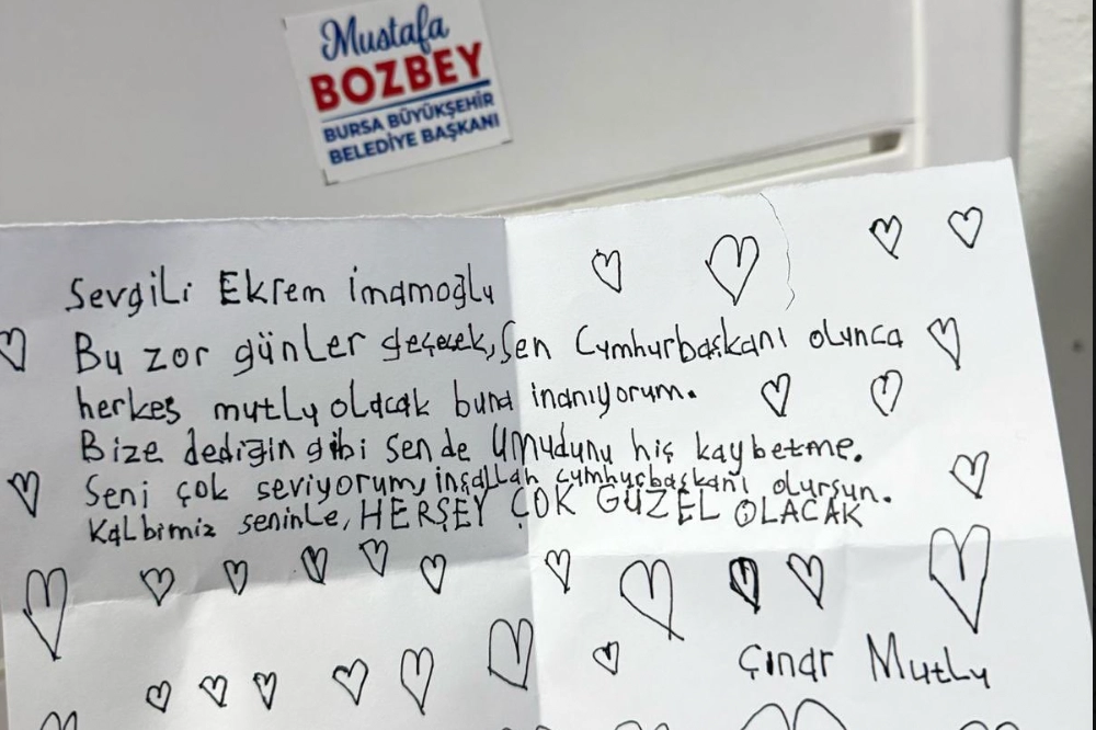 Bozbey, çocukların Ekrem İmamoğlu’na yazdığı mektuplara da dikkat çekti ve "Bursalı çocuklarımız, Ekrem Başkanımıza yazdıkları harika mektuplar ile büyük bir alkışı hak ediyor. Mektuplarını bizzat Ekrem Başkanımıza ileteceğim. Çocuklarımızın bu samimi ve içten duygularına şahit olmak, bizleri daha da güçlendiriyor" diyerek, geleceğe dair umutlarının artığını vurguladı.