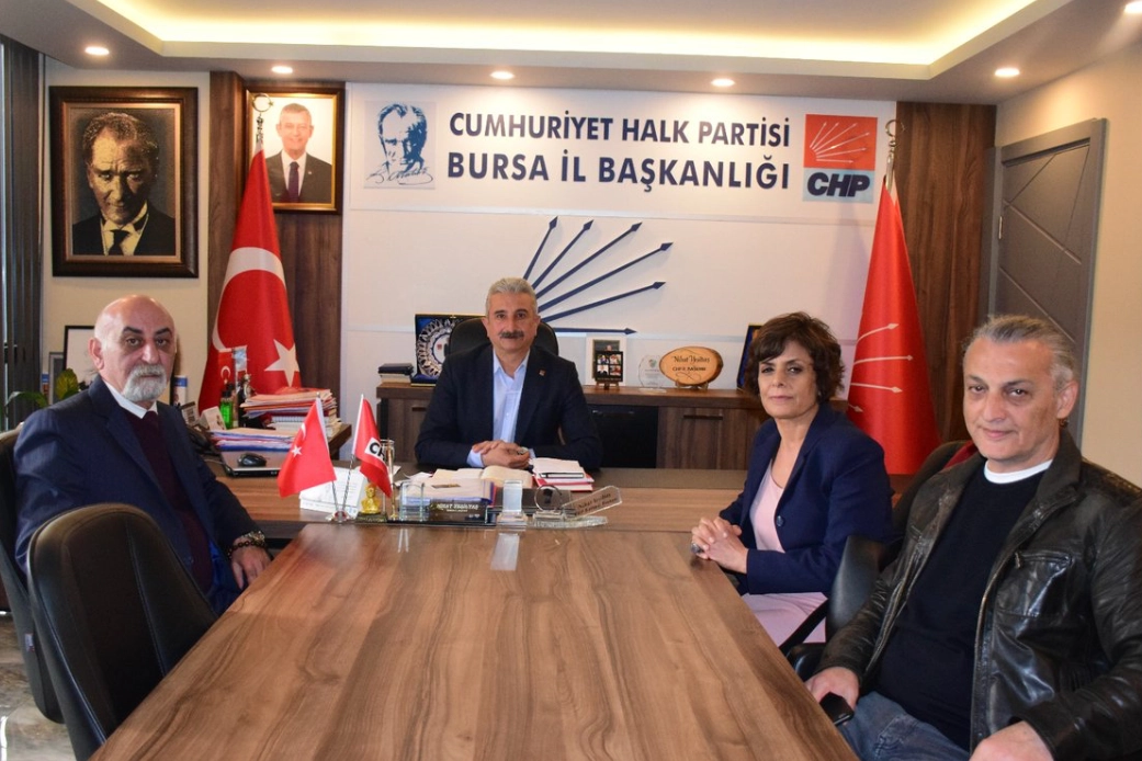 CHP Bursa İl Başkanı Nihat Yeşiltaş, KESK Genel Sekreteri Sevgi Yılmaz, Yapı-Yol Sen Bursa Şube Başkanı Okan Okumuş ve Eğitim-Sen Bursa Şube Başkanı Derviş Erdem’i il başkanlığında ağırladı.