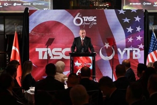 Cumhurbaşkanı Recep Tayyip Erdoğan, Türk-Amerikan Ulusal Yönlendirme Komitesi (TASC) tarafından Rockefeller Plaza'da düzenlenen akşam yemeğine eşi Emine Erdoğan ile katıldı. Türk-Amerikan toplumunun mensuplarıyla beraber olmaktan duyduğu memnuniyeti dile getiren Erdoğan, "Aşkınız, sevdanız ve ahde vefanız için her birinize ayrı ayrı şükranlarımı sunuyorum." ifadesini kullandı.