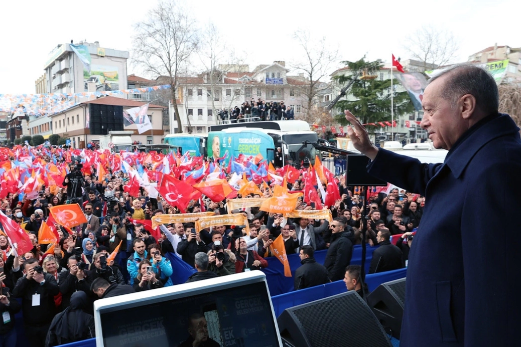 Erdoğan konuşmasına devam ederek, “Bunlarda demokrasiye ve demokrasi kültürüne bağlılık yok. Bunlarda kendini vatandaşa karşı kendini sorumlu hissetme duygusu yok. Bunlarda istişare etmek, sokağa kulak vermek gibi bir alışkanlık yok. Bunlarda hatasından dolayı milletten helallik istemek gibi bir erdem yok. Bunlarda Türkiye'yi büyütmek, Türkiye'ye ufuk çekmek, ülkemizin önünü açmak, şehirlerimizi yeni yatırımlarla geliştirmek gibi bir dert yok. Peki, bunun yerine ne var? Tek parti dönemi faşizmine özlem var. Vatandaşa tepeden bakma hastalığı var. Terör örgütlerine şaşı bakma zihniyeti var. Siyasi ikballeri için her şeyi yapma omurgasızlığı var. Seçim meydanlarında tutmayacakları sözleri verme hainliği var. Çantada keklik gördükleri kupon belediyeler için meydan muharebesi verme ihtirası var. Bir de iradesine haciz koydukları vatandaşımızı korkutmak, ürkütmek, endişelerini istismar etmek var. Maşallah, bizim seçmenlerimiz burada bak. Gençler, bugüne kadar hep bunu yaptılar. Yalan ve istismar siyaseti ile bir şekilde gemilerini yürüttüler. Köken, inanç, meşrep, mezhep ve hayat tarzı üzerinden insanımıza korku salarak bir şekilde siyasi kariyerlerini garanti altına aldılar. Ama halkın nazarında tüm kredilerini bitirmiş, sıfırı tüketmişlerdir. CHP'nin istismar ve korku siyaseti inşallah 31 Mart'ta son bulacaktır. AK Parti ve Cumhur İttifakı olarak biz de bu süreci kolaylaştıracağız. Önümüzdeki 50 gün boyunca her zamankinden çok daha fazla çalışacağız. Ana kademe çok daha fazla çalışmaya var mıyız? Kadın Kolları, çok daha fazla çalışmaya var mıyız? Gençler çok daha fazla çalışmaya var mıyız? Başkalarının fitne girişimlerine karşı kimseyi ötekileştirmeyeceğiz. Kutuplaştırandan değil, kucaklaştıranlardan olacağız. Gerilimi körükleyenlerden değil, kardeşliği savunan kardan olacağız. Hiç bir ayrım gözetmeden milletimizin tüm fertlerini bağrımıza basacağız. Türkiye Yüzyılının inşaası için gece gündüz demeden çalışırken hiç bir engelin bizi yolumuzdan alıkoymasına izin vermeyeceğiz. Özellikle çarpık ve sağlıksız yapılaşmanın yaygın olduğu, deprem riski yüksek illerimize daha fazla yoğunlaşacağız. İnşallah, Tekirdağ'da Cüneyt kardeşimizle birlikte tüm ilçelerde el ele vermek suretiyle Tekirdağ'ı yeniden ayağa kaldıracağız. Yeniden Tekirdağ diyoruz. Genç, dinamik bir yapıyla Tekirdağ'da merkezi yönetim ve Tekirdağ Belediyemiz el ele vereceğiz ve Tekirdağ'ın ayağa kaldıracağız. Tekirdağ'ın da bu süreçte bizlere destek vereceğine, bu mücadelede bizleri yalnız bırakmayacağına inanıyoruz. Biz, Tekirdağ'ı tıpkı hükümet işlerinde olduğu gibi yerel yönetim işlerinde de hak ettiği hizmetlere ulaştırmak istiyoruz. Tekirdağ'ın, AK Parti ve Cumhur İttifakı'nın gerçek belediyecilik vizyonuna acil ihtiyacı olduğu açıktır. İnşallah, 31 Mart yerel seçimleri bu noktada Tekirdağ'ımız için bir milat olacaktır. Tekirdağ ve Tekirdağlı kardeşlerimin 31 Mart'ta sandıklara gittiklerinde en doğru, en isabetli kararı vereceklerinden şüphe duymuyorum. Gençler öyle mi? Şimdi, Tekirdağ'a soruyorum. Hazır mıyız? Tekirdağ, 31 Mart'ta Türkiye Yüzyılı şehirleri için hazır mıyız? 31 Mart'ta Türkiye Yüzyılı şehirleri için kararlı mıyız? 31 Mart'ta gerçek belediyeciliği tercih ediyor muyuz? Bunun için seçim gününe kadar kapı kapı dolaşmaya var mıyız? Büyük ve güçlü Türkiye vizyonumuza sıkı sıkıya sahip çıkmaya var mıyız? Seçim akşamı, Tekirdağ ile birlikte Türkiye Haritası'nı Cumhur İttifakı'nın renkleriyle boyamaya var mıyız? Rabbim hepinizden razı olsun. Kardeşlerim, bizim hizmet ve eser siyasetimizin en yakın şahidi Tekirdağ'dır. Son 21 yılda, Tekirdağ'a güncel rakamlarla toplamda 157 Milyar Liralık yatırım yaptık. 4 bin 149 adet yeni derslik inşa ettik. Namık Kemal Üniversitesi'ni ilimize kazandırdık. 4 bin 973 kişi kapasiteli yükseköğretim yurt binaları açtık” diye konuştu.