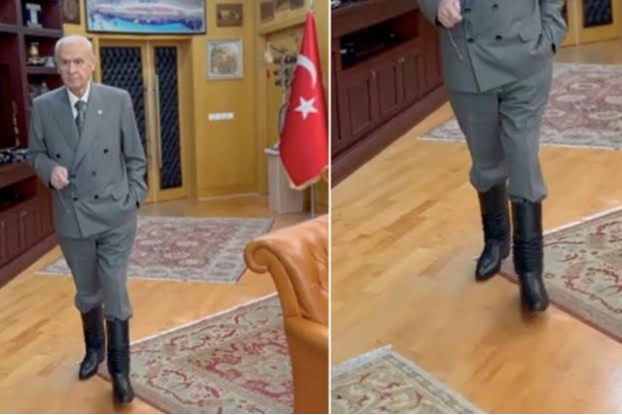 MHP, Zeki Müren şarkısı eşliğinde Devlet Bahçeli'nin ayağında çizme olan bir videosunu paylaştı: