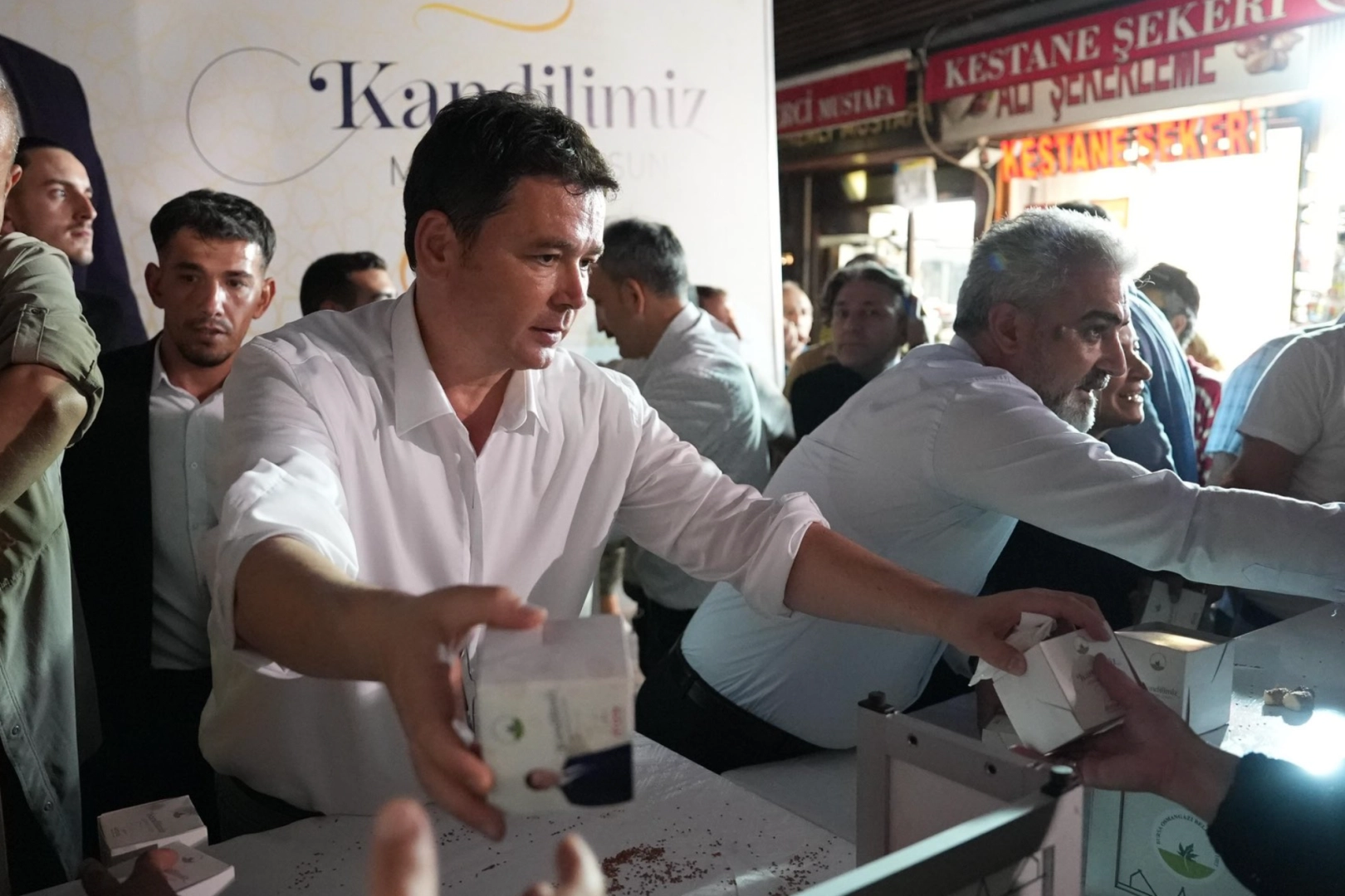 Osmangazi Belediye Başkanı Erkan Aydın, Mevlit Kandili münasebetiyle Ulu Cami'de kandil simidi dağıttı.