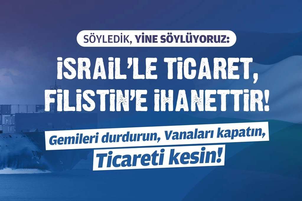“Söyledik, yine söylüyoruz: İsrail’le ticaret, Filistin’e ihanettir. Gemileri durdurun, vanaları kapatın, ticareti kesin❗️” başlığıyla bir paylaşım yaptı.
