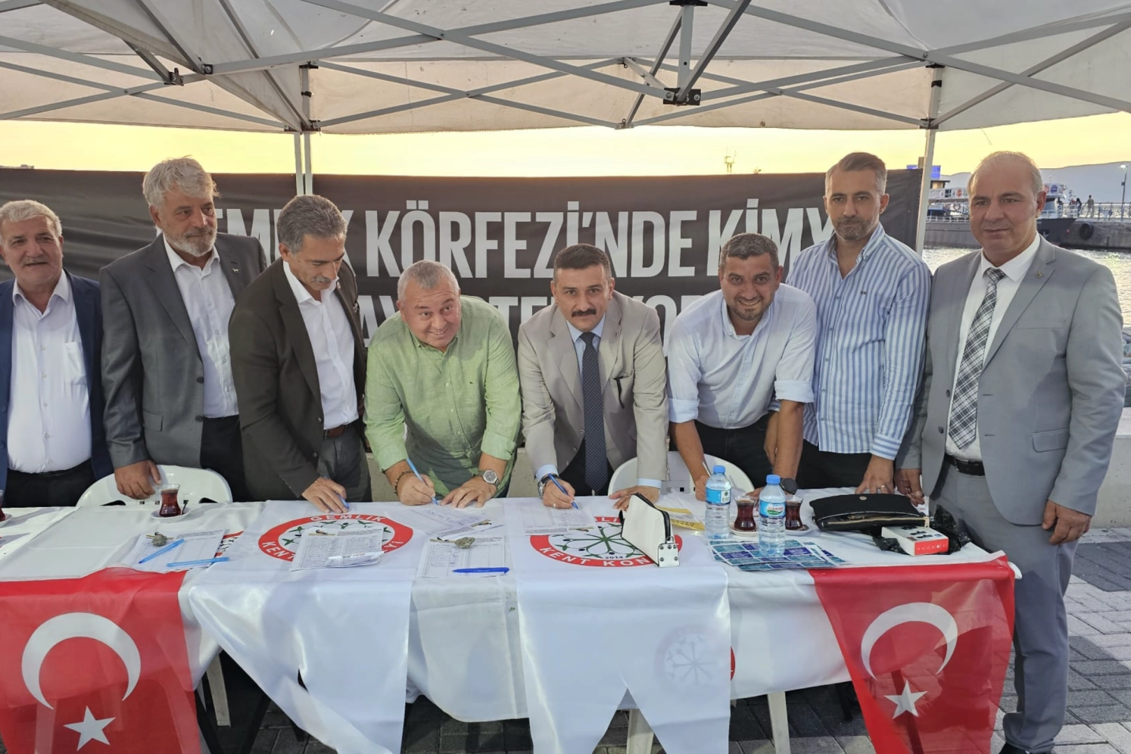 İYİ Parti Bursa Milletvekili Selçuk Türkoğlu, Gemlik'te deniz kirliliğine yol açmasına protesto ve tepki amaçlı yapılan imza kampanyasına katıldı.