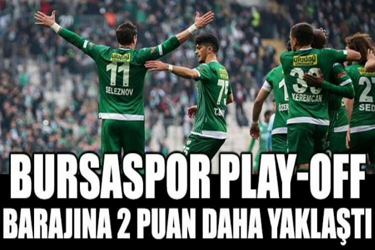 TFF 1. Lig’in 27. haftasında deplasmanda Adanaspor’u 3-0 mağlup eden Bursaspor’da moraller yerine geldi. Milli araya galibiyetle giren yeşil-beyazlı takım, Play-Off barajına bir adım daha yaklaştı. 25 hafta sonunda hedefinden 10 puan geride kalan Bursaspor, Ankaraspor galibiyeti sonrası 9’a, Adanaspor’u mağlup ettikten sonra da 7’ye düşürdü. Puanını 40’a yükselten yeşil-beyazlılar, 47 puanla 6. sırada bulunan İstanbulspor’u takibini sürdürdü. Bursaspor kalan 7 maçında, Altay, Bandırmaspor, İstanbulspor ve Keçiörengücü ile Bursa’da karşı karşıya gelirken, Ümraniyespor, Samsunspor ve Eskişehirspor’la deplasmanda kozlarını paylaşacak.