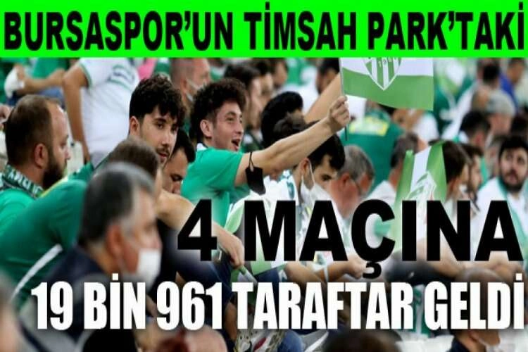TFF 1. Lig’de 7 hafta geride kalırken Bursaspor, sahasında 4 maç oynadı. Yeşil-beyazlı taraftarlar bu maçlara pandemi ve aşı zorunluluğu sebebiyle yoğun ilgi gösteremedi. Sezonun ilk maçında Adanaspor’u konuk eden Bursaspor’u 4 bin 905 taraftar takip ederken, Eyüpspor müsabakasında 4 bin 561, Samsunspor maçında 4 bin 283 ve son olarak da Ankaragücü karşılaşmasında 6 bin 212 biletli seyirci Timsah Park’taki yerini aldı. Toplam 19 bin 961 adet bilet satan Bursaspor Kulübü, buradan 850 bin TL gelir elde etti.