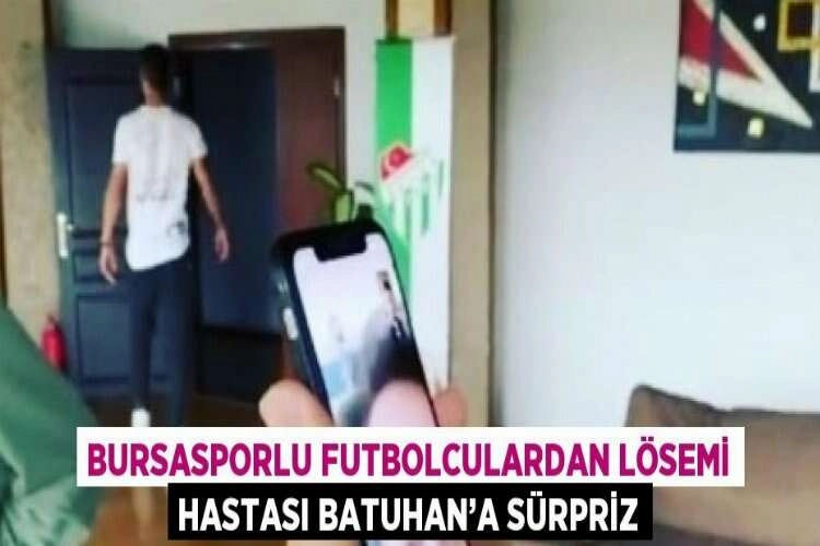 Yeşil-beyazlı oyuncular, lösemi tedavisi gören Bursaspor taraftarı Batuhan’ı görüntülü arayarak moral aşıladılar.Bursasporlu futbolcular, lösemi hastası olan ve Bursa’da tedavi gören 19 yaşındaki Batuhan’a bir sürpriz yaptı. Yeşil-beyazlı takımın oyuncularından Emirhan Aydoğan, Anıl Karaer ve Sedat Dursun, Bursasporlu Batuhan’ı görüntülü arayarak ona destek mesajı verdi. Bursasporlu futbolcular, görüşme esnasında Batuhan’ı ziyaret ederek ve kendisine forma götüreceklerini müjdeledi.