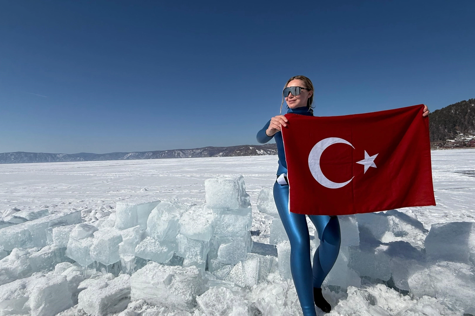 Milli Sporcu Şahika Ercümen, iklim krizinin etkilerine dikkat çekmek için Rusya'daki dünyanın en derin gölünde buz altı dalışı yaptı.