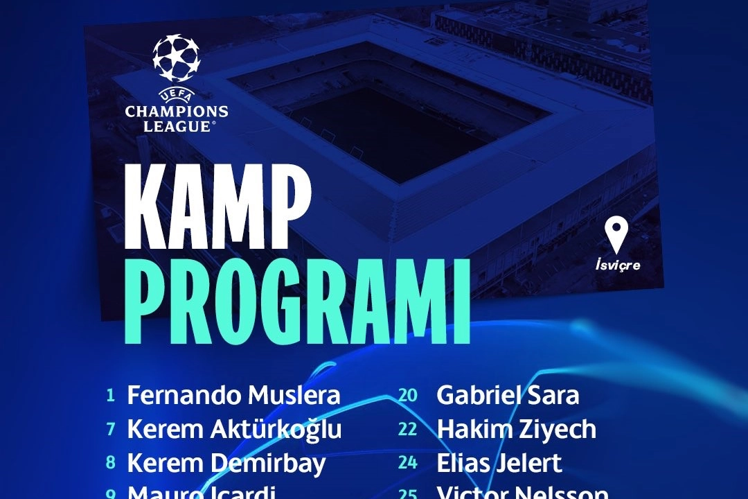 UEFA Şampiyonlar Ligi play-off turunda yarın deplasmanda İsviçre ekibi Young Boys ile karşılaşacak Galatasaray'ın kamp kadrosu açıklandı.