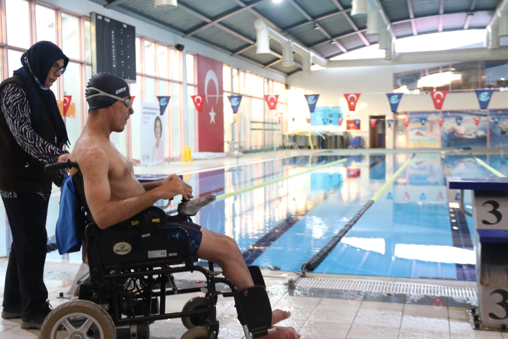Nuray Eğilmez: "Yüzmeye başlayınca 'Demek ki bu çocuk ilerleyecek' dedim" Gelişimi için yüzmeye yönlendirdiği serebral palsi hastası oğluyla 21 yıldır antrenmanlara, şehir dışı ve yurt dışındaki müsabakalara giden 57 yaşındaki anne Nuray Eğilmez, "Oksijensiz kaldığı için serebral palsi hastası oldu. Bunu oğlum 2-2,5 yaşına geldiğinde anladım. Doktor serebral palsi dedikten sonra onu her yere götürdüm tedavi için. Sonra 6 yaşında yüzmeye başladık. 2017 yılında da tam anlamıyla yüzmeye başladı, yarışlara gidiyorduk. Türkiye şampiyonalarına da gittik. Sonra milli takım seçmelerine katıldı ve kazandı. 2019 yılında Belarus'a gitti, orada şampiyonalara katılarak madalyalar kazandı. Tabii ki bizi çok gururlandırdı. Böyle olunca biraz kendine geldi, biraz biraz konuşmaya başladı. Sonra yüzmeye de başlayınca 'Demek ki bu çocuk ilerleyecek' dedim" diye konuştu.