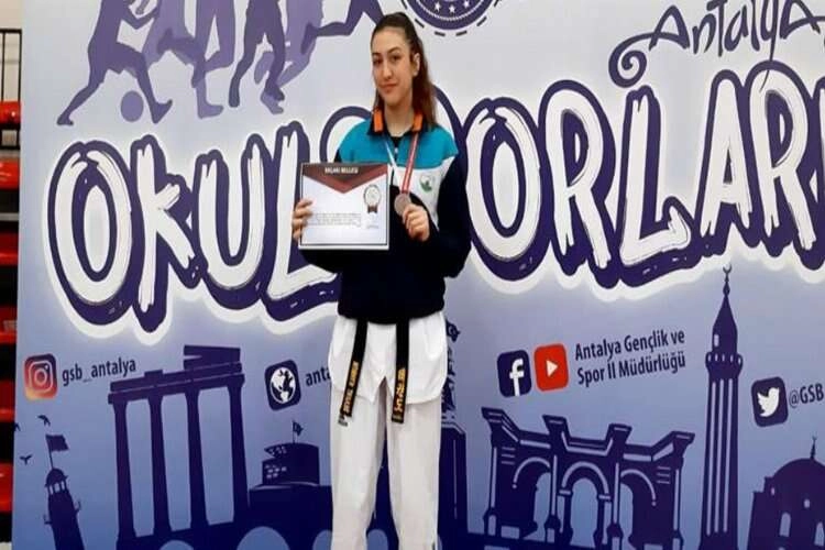 Antalya Gençlik ve Spor İl Müdürlüğü tarafından Alanya’da düzenlenen Liseler Arası Türkiye Gençler Tekvando Şampiyonası’nda kıyasıya mücadeleler yaşandı. Toplam 320 sporcunun ter döktüğü müsabakada 55 kilogramda boy gösteren Osmangazili Şevval Melek Kambur, üçüncülük kürsüsüne çıkmayı başardı. Osmangazi Belediye Başkanı Mustafa Dündar, rakipleri karşısında gösterdiği üstün performanstan dolayı genç sporcuyu kutladı. Büyük mutluluk yaşayan Kambur ise gelecek müsabakalarda iddiasını koruyacağını vurguladı.