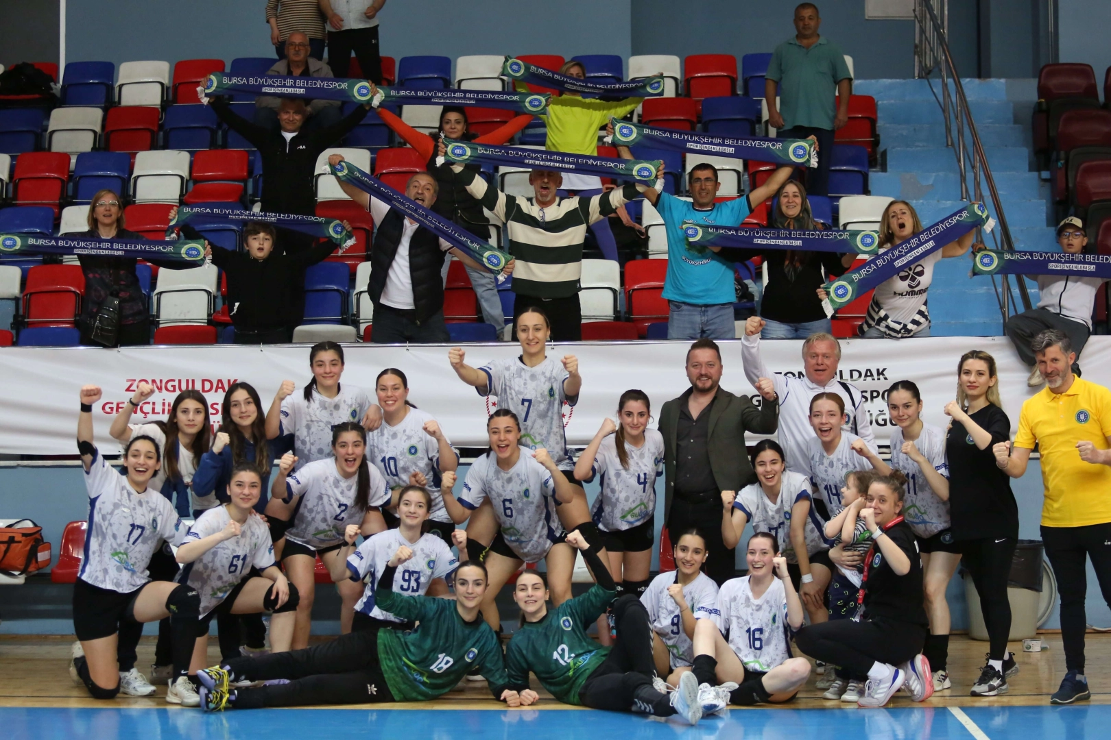 Zonguldak'ta devam eden Kadınlar Hentbol 1. Ligi play-off'larında Bursa Büyükşehir Belediyespor, üçüncü maçında Sivas Belediyespor'u 33-26 mağlup ederek, 3'te 3 yaptı ve bitime bir maç kala şampiyon olarak Süper Lig'e çıkmayı garantiledi.