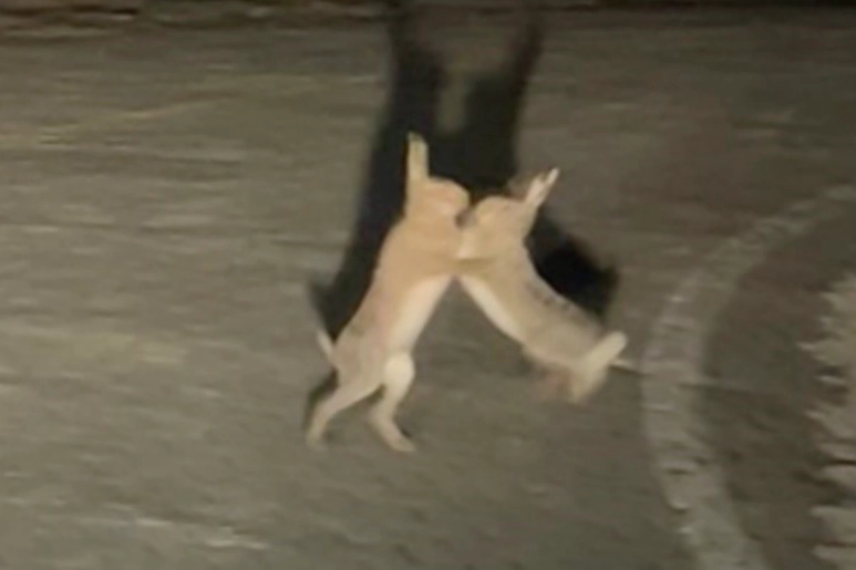 Habip Pempe, o anları cep telefonu kamerasıyla kaydetti. Tavşanların sevimli kavgasını görenlerlerin yüzünde tebessüm oluştu.