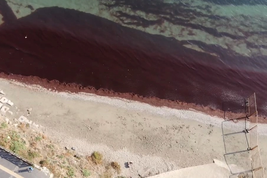 Tekirdağ’da poyraz rüzgarlarının etkili olduğu kasım aylarında kırmızı yosunların kıyıya vurdu. Her yıl şehirde sahil boyunca uzanan bu manzara alışıldık bir durum haline geldi. Poyraz fırtınası etkisini kaybederken sahil boyunca uzanan kızıl renk drone ile de havadan görüntülendi.