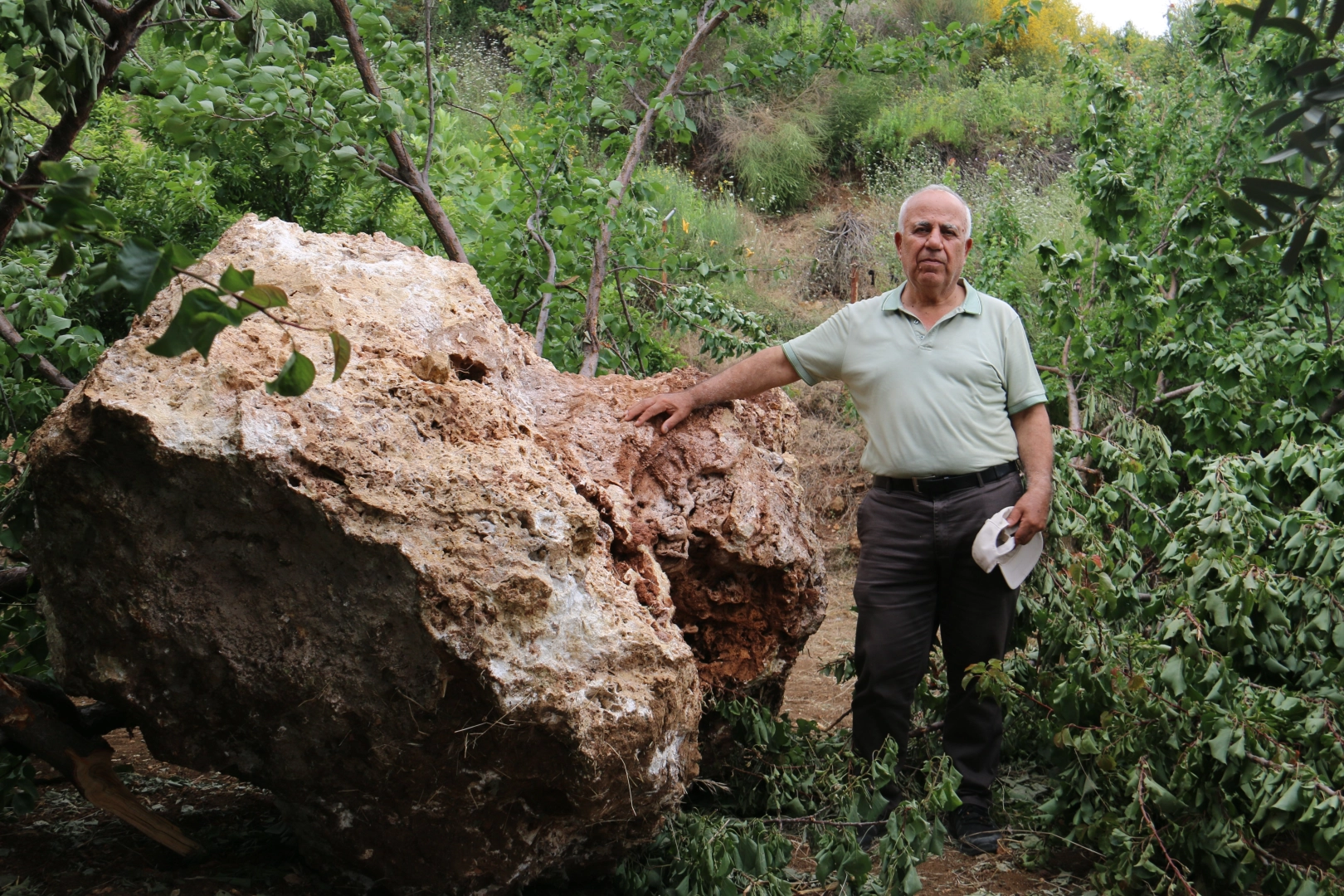 Hatay’da taş ocağından bahçesine 10 tonluk devasa kaya düşen Selahattin Altınöz, ailesinin kayısı topladığı esnada gerçekleşen olaya tepki göstererek çalışmaların duyarlı bir şekilde gerçekleştirilmesini talep etti.