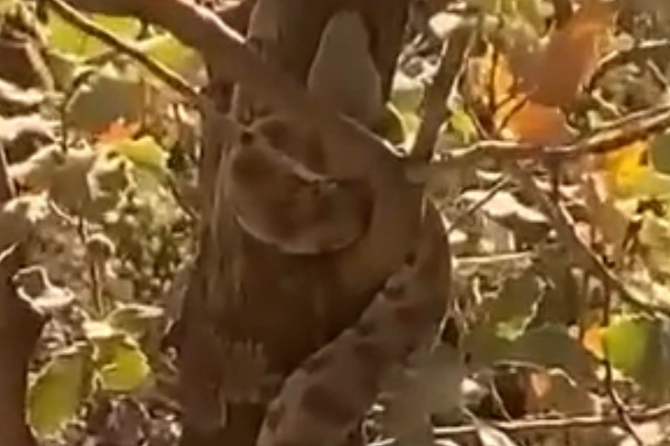 Mardin'in Nusaybin ilçesine bağlı Bagok Dağı bölgesinde ağaca tırmanan engerek yılanı, vatandaşın cep telefonu kamerasına yansıdı.