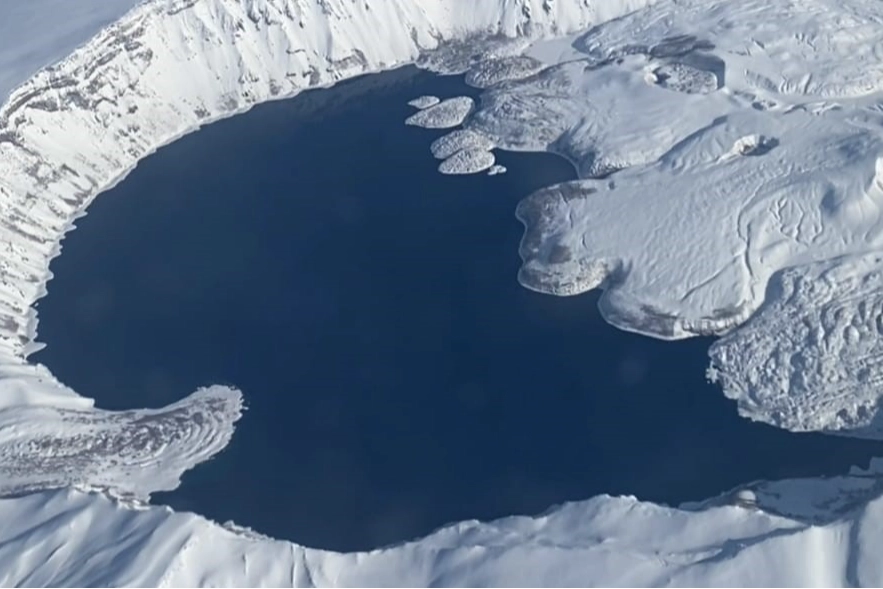 Beyaz örtüyle kaplanan krater alanı ve buz tutan göl, gökyüzünden bakıldığında adeta eşsiz manzaralar sunuyor. Kış mevsiminin etkisini artırmasıyla birlikte tamamen karla kaplanan Nemrut Kalderası, doğa tutkunlarının ve fotoğraf meraklılarının ilgisini çekiyor.