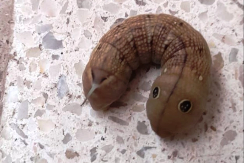 Bir kişi evlerinin balkonunda oturdukları sırada oyuncak zannettikleri kurtçuğu araştırınca "Fil Şahin Güvesi" larvası olduğunu öğrendi.
