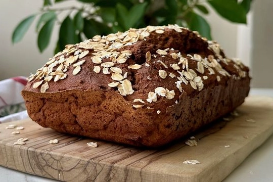 *Yulaf unu, karbonat ve tuzu büyükçe bir kaseye alıp harmanlayın. Kesilen sütlü karışımı unlu karışıma eklerken bir yandan el çırpıcısı veya spatula yardımıyla hızlıca karıştırın, bekletmeden kalıba aktarıp üzerini düzeltin, yulaf ezmesi tanelerini hamurun üzerine serpiştirin ve hemen ısınmış fırına verin.