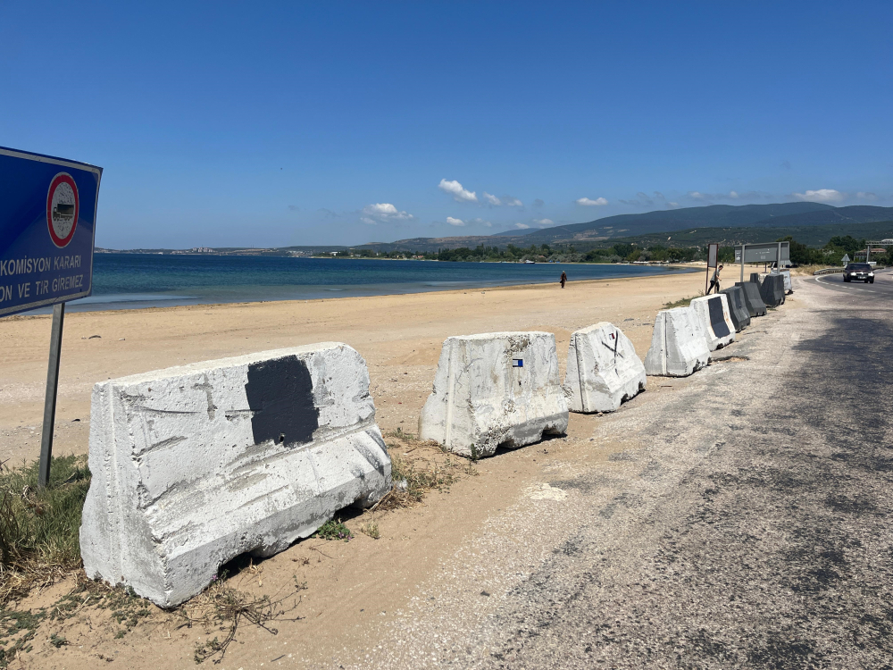 Erdek Belediyesi tarafından Balıkesir Büyükşehir Belediyesi'ne ait beton barikatlar izinsiz kullanılarak Edincik altı olarak adlandırılan bölgedeki halk plajına araç girişleri engellendi.