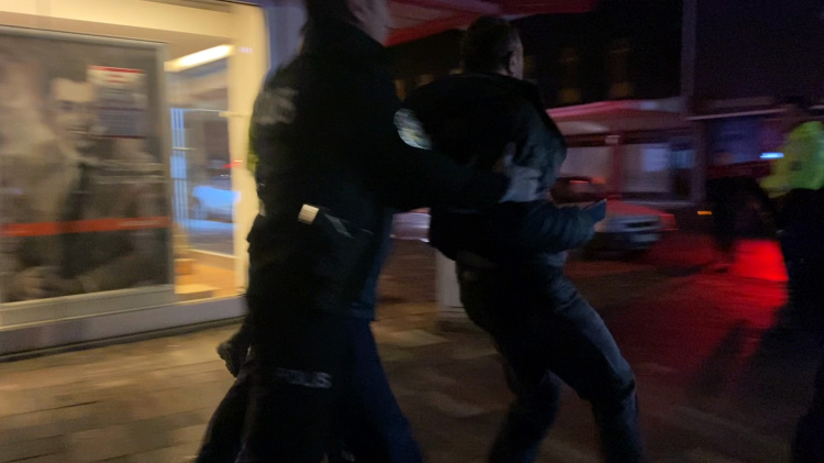 Polis ekiplerine tepki gösterip, yüksek sesle konuşan Şahin B., "Ağabey sen beni burada niye durduruyorsun? Duba koymamışsın. Bir şey koymamışsın. Bankaya para çekmeye geliyorum, sen beni burada niye durduruyorsun? Niye bağırmayacağım? Terörist miyim ben? Alın beni karakola götürün" diye sitem etti.