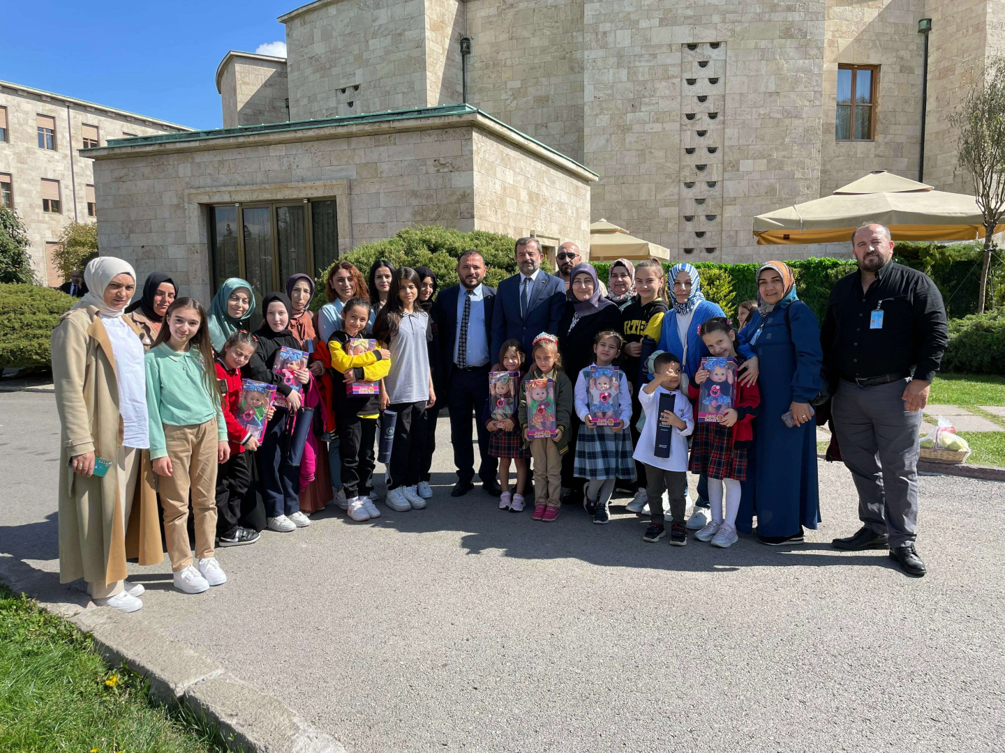 Cumhurbaşkanı Erdoğan ile görüştükten sonra TBMM’yi gezme imkanı da bulan Gürsu Belediye Başkanı Mustafa Işık’ın küçük misafirleri, Başkan Işık, eşi Sümeyye Işık, AK Parti Gürsu İlçe Başkanı Erkan Şekeroğlu ve Milletvekili Emine Yavuz Gözgeç ile beraber özel hazırlanan Gürsu armutlarını da ikram etti. İsim annesi Hatice Muazzez Kutlay olan Gürsu’nun kadına verdiği değerin aktarıldığı ziyaret herkesi tebessüm ettirdi.