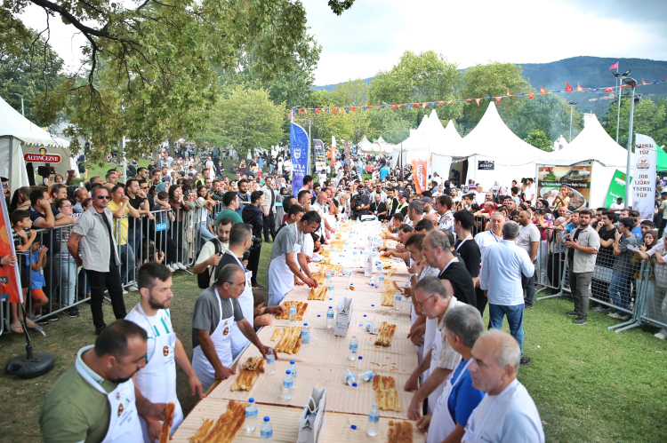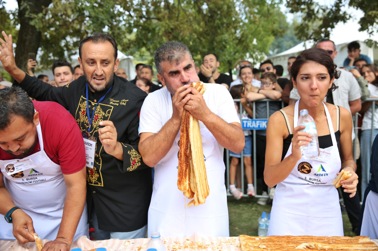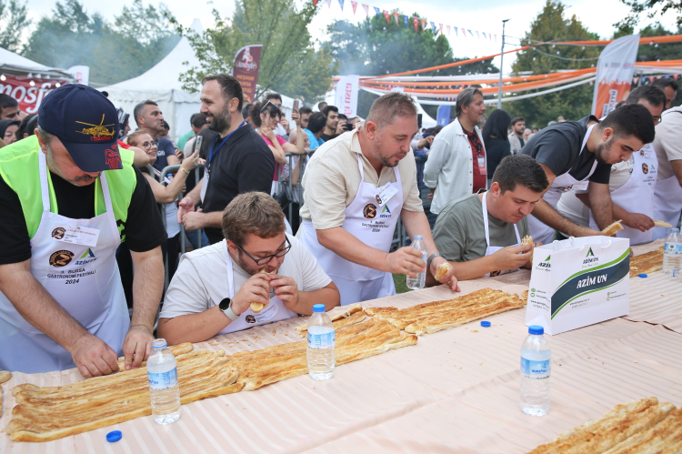 Bursa Büyükşehir Belediyesi tarafından bu yıl 3.'ncüsü düzenlenen Gastronomi Festivali çerçevesinde, en uzun börek yeme yarışması yapıldı. Merinos Atatürk Kongre Kültür Merkezi'nde açık havada yarışmaya katılan vatandaşlara 10 dakika süre tanındı. Kıran kırana geçen yarışmada 10 dakikada ek börek isteyerek 15 metre börek yiyen Ahmet Kılıç birinci oldu.