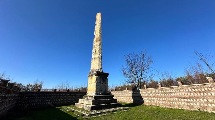 Bursa'nın İznik ilçesinde bulunan Roma dönemine ait mezar anıtı olan 2 bin yıllık dikilitaş, şeftali bahçelerinin ortasındaki ihtişamıyla turistlerin ilgi odağı haline geldi.